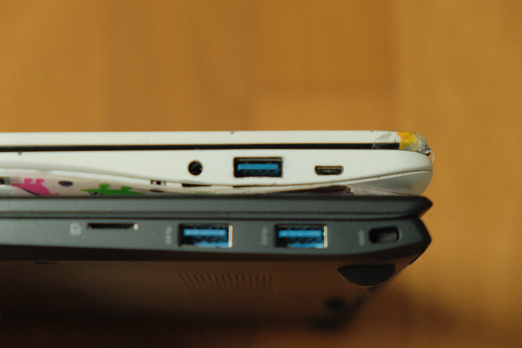 노트북 오른쪽 단자를 보면 기존과 동일하게 마이크로 SD 리더기가 있고, USB 포트 두 개가 다 이쪽으로 왔네요.