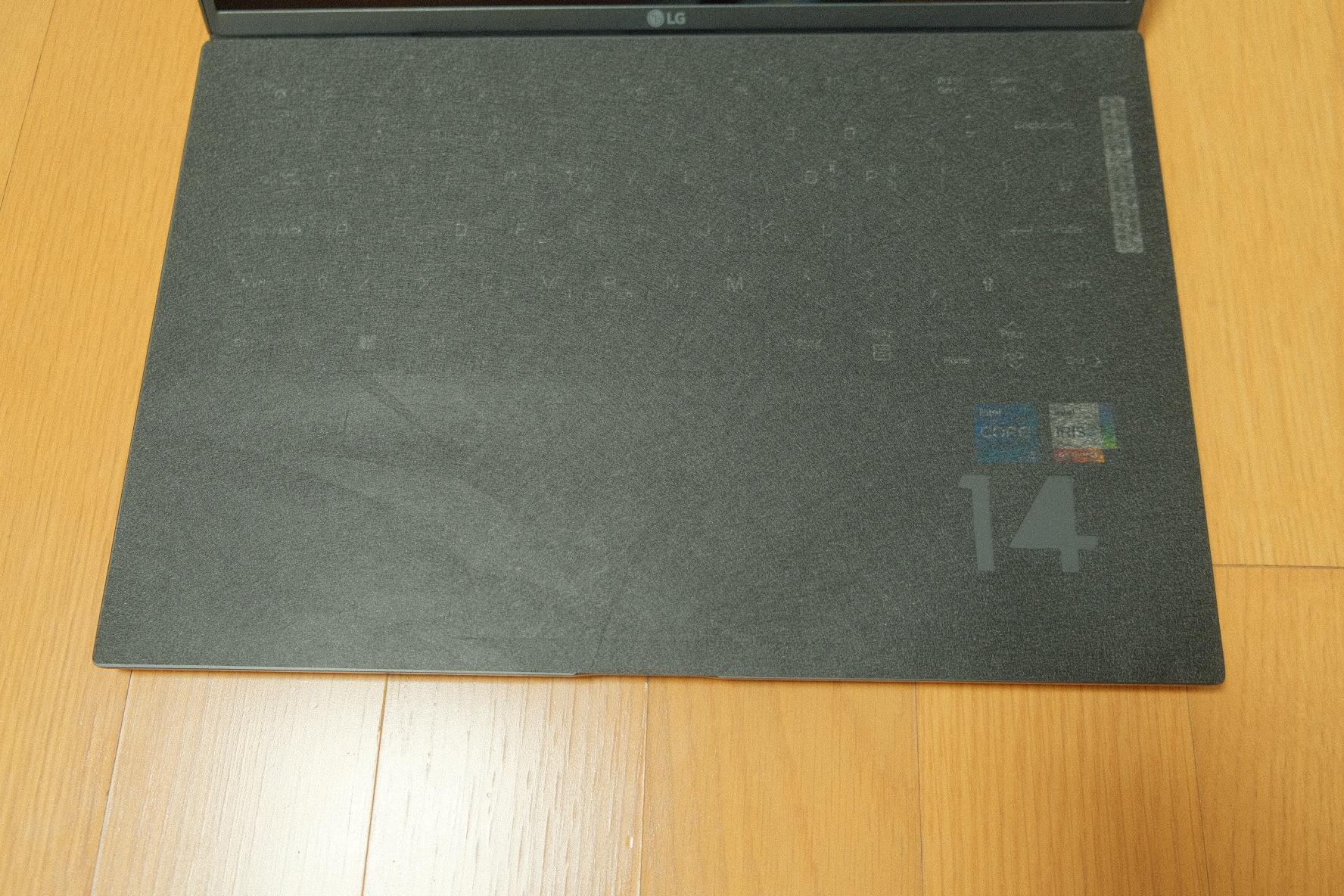 부직포 안에 노트북을 꺼내니 아래 사진처럼 위에 하드보드지 같은 곳에 "14"가 구멍이 난 것이 보이네요 ㅎ