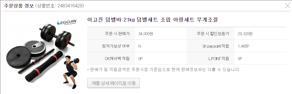 뭘 할까 비교해보고 하다가 비교적 가격대가 낮은 이고진 덤벨 바 세트로 주문했어요.