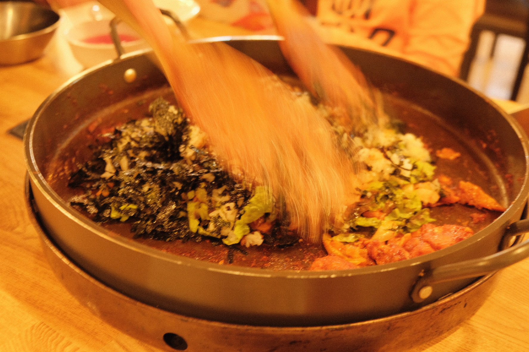하지만 곧 현란한 솜씨로 닭을 볶아 주시는 이모님의 손실에 넋을 잃고 보고 있었네요 ㅋ