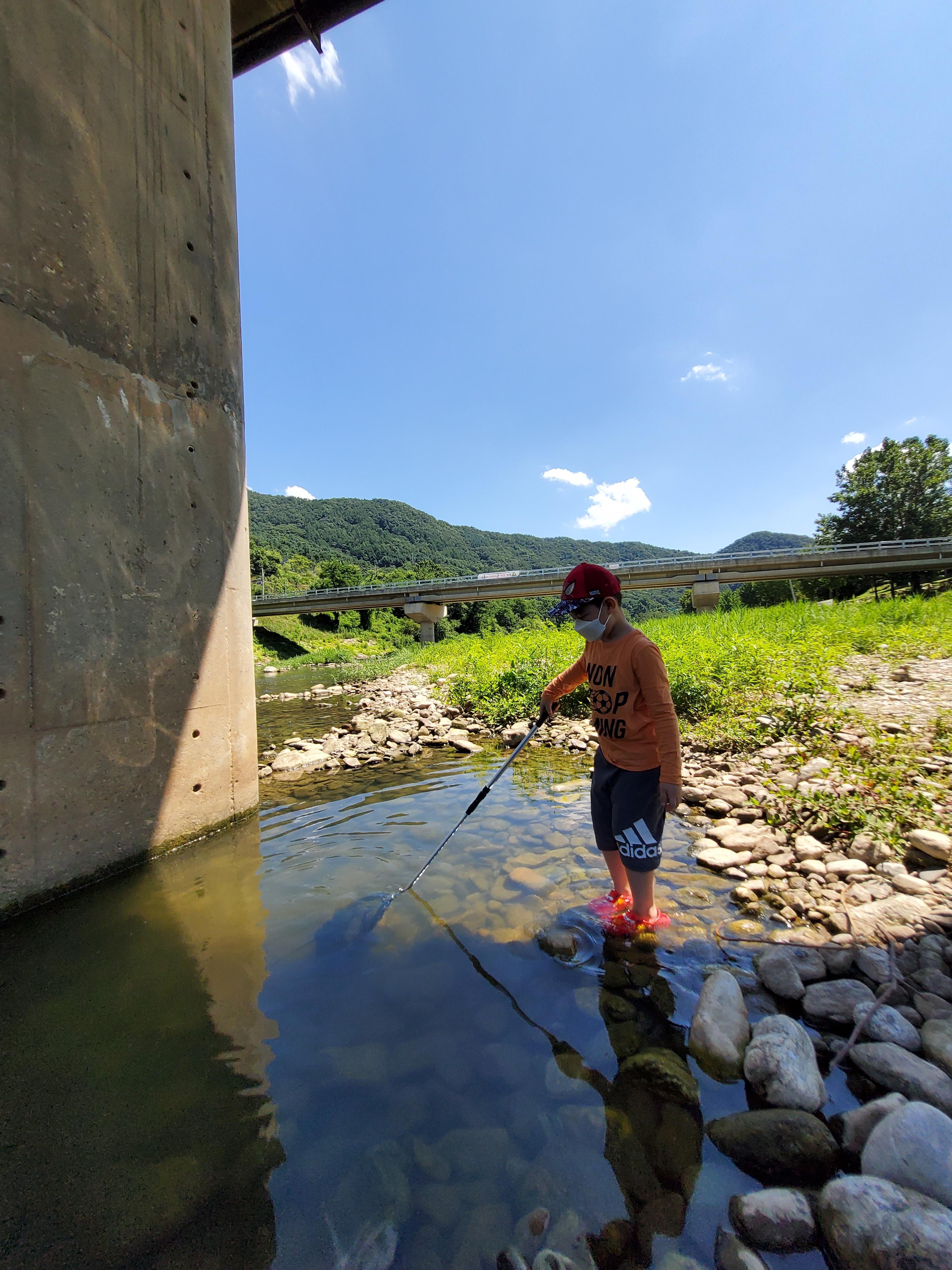 폭염주의보가 막 뜨고 해서 다리 아래에서만 물고기를 잡았어요 ㅎ