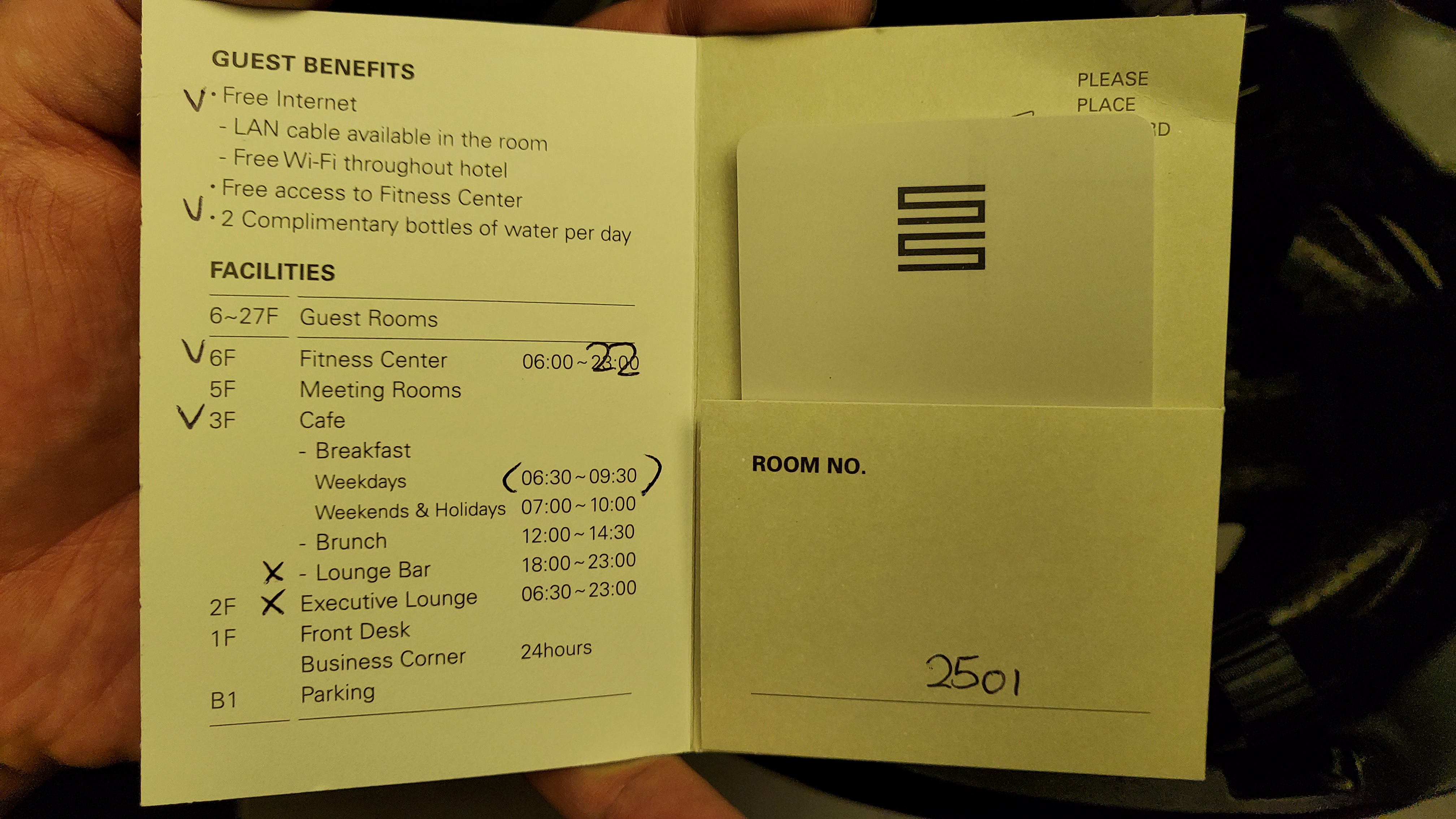 저희가 배정받은 방은 2501호였어요, 참 숙소 예약은 그랜드 디럭스 더블로 예약했어요