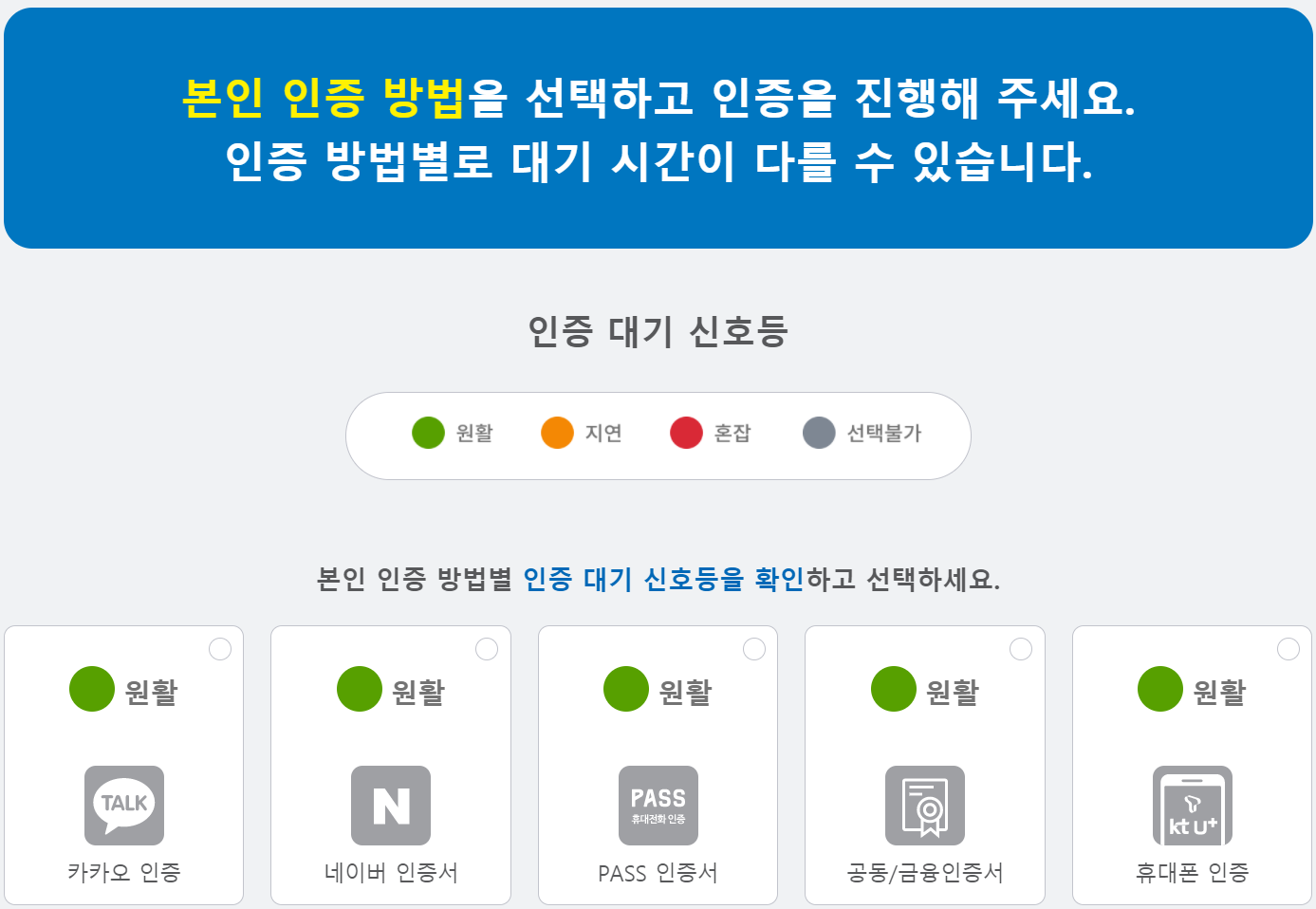 2. 본인인증: 카카오 인증 또는 네이버 인증 사전에 신청해 놓을 것!