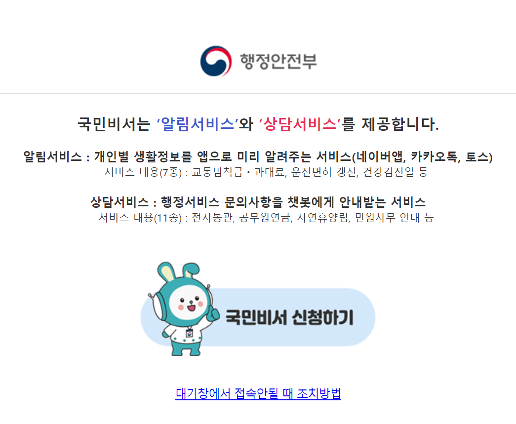 그냥 그렇게 끝낼까 하다가 제일 아래 국민비서 서비스 신청하기가보여서 신청해봤습니다.