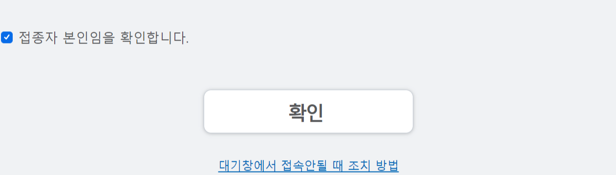 위와 같은 화면이 뜨는데 먼저 접종자 본인임을 확인합니다에 체크하고 아래 확인 버튼 눌러주세요