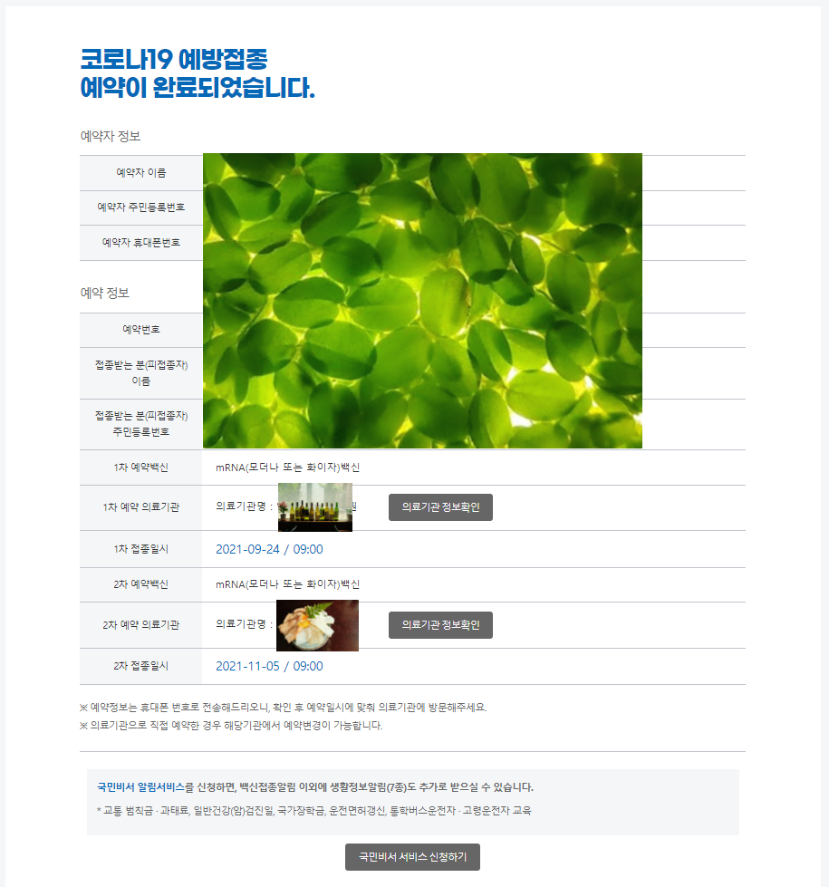 예약이 완료되게 되면 아래화면과 같이 1차 2차 예약까지 한번에 된 것을 확인하실 수 있으세요
