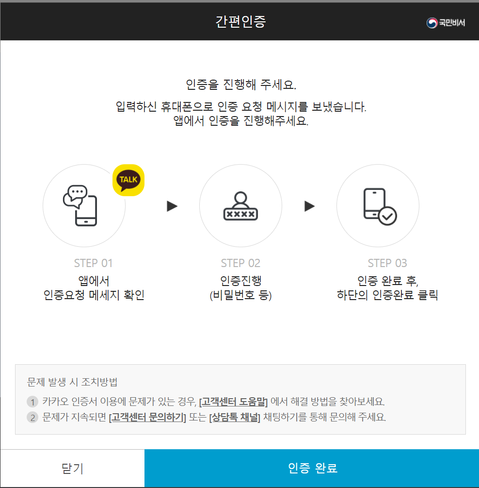 저는 이번에도 카카오 톡으로 인증해봤습니다.