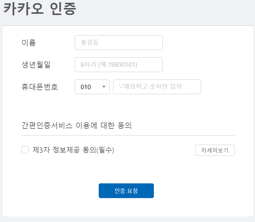 카카오 인증이나 네이버 인증 가입 같은 경우는 각 사이트에 자세히 나와 있어서 추가 설명하지 않았습니다.