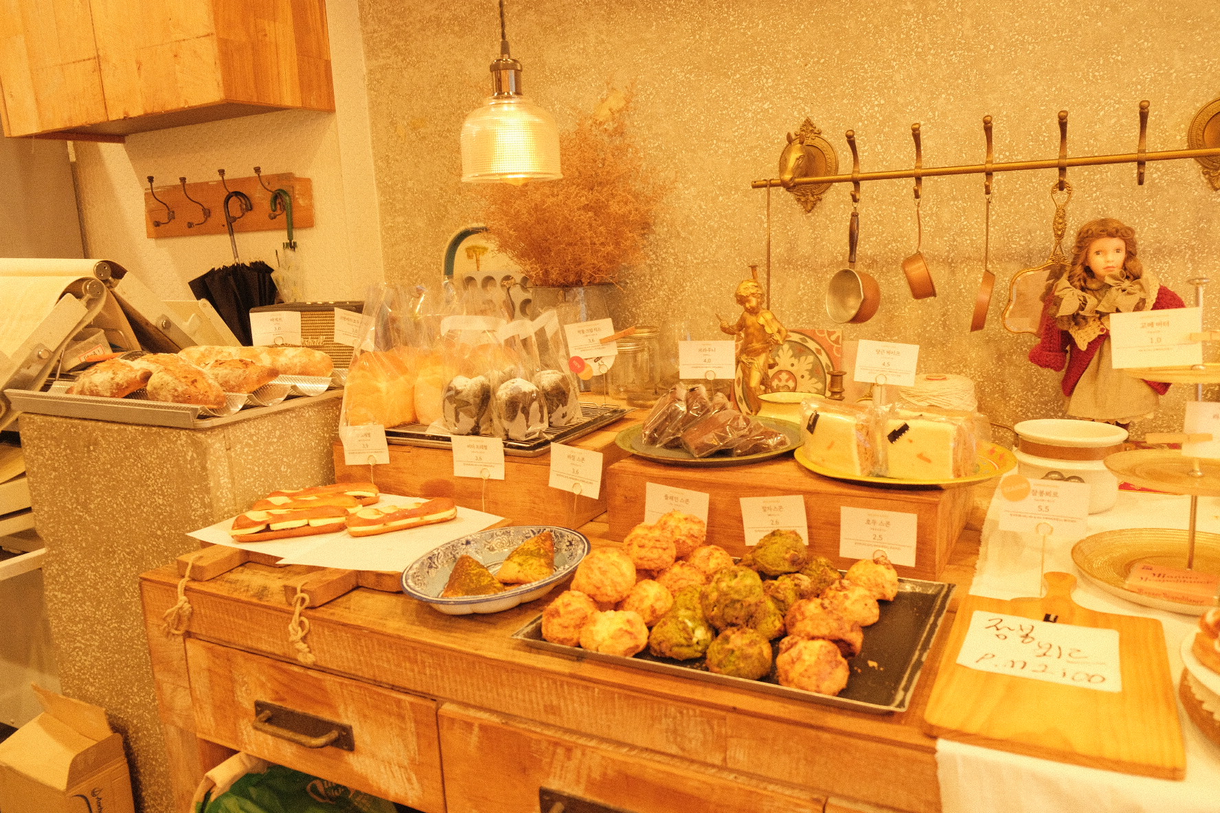 매장 안에 들어가니 제일 먼저 제 눈을 사로잡는 곳은 오른쪽 빵이 진열된 곳이었는데, 예쁜 소품들과 함께 함께 있어서 더 예뻐 보였어요