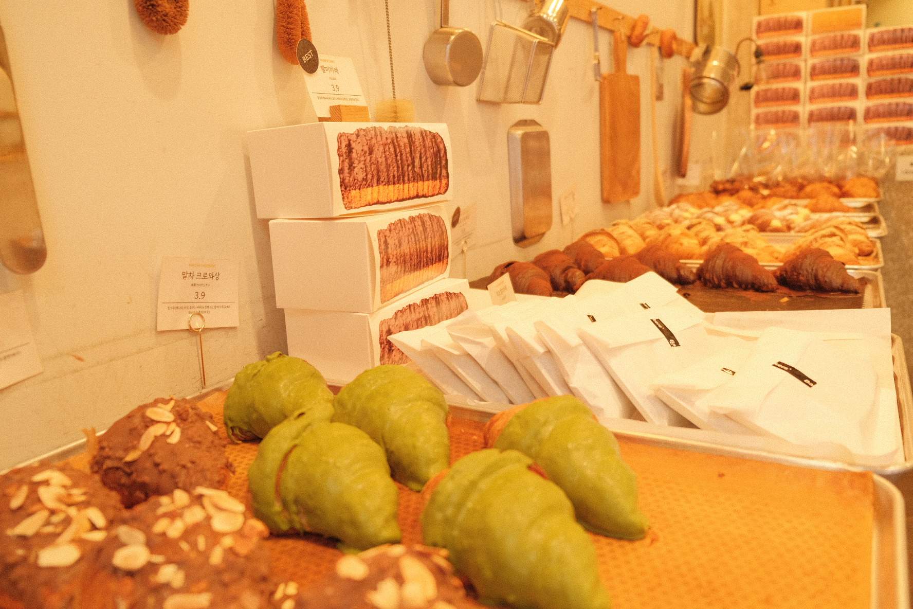매장 오른편에는 살짝 무거운 스콘 같은 빵들이 있었는데, 여긴 크로와상을 기본으로 초코를 입히는 방식으로 여러 가지 빵들을 만들어 판매하고 계셨어요