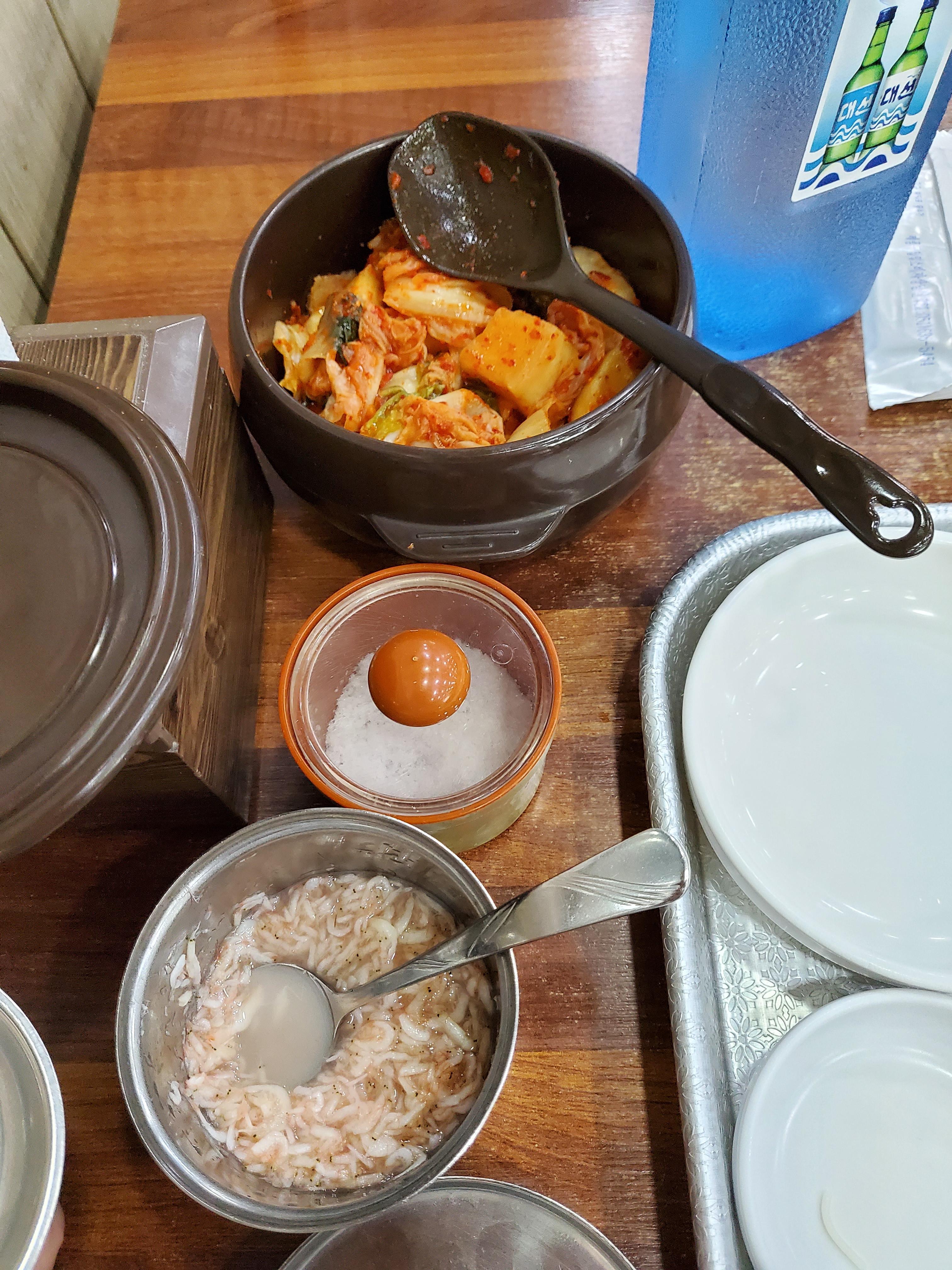그리고 옆에 김치 항아리가 있어서 덜어먹을 수 있게 되어 있었어요