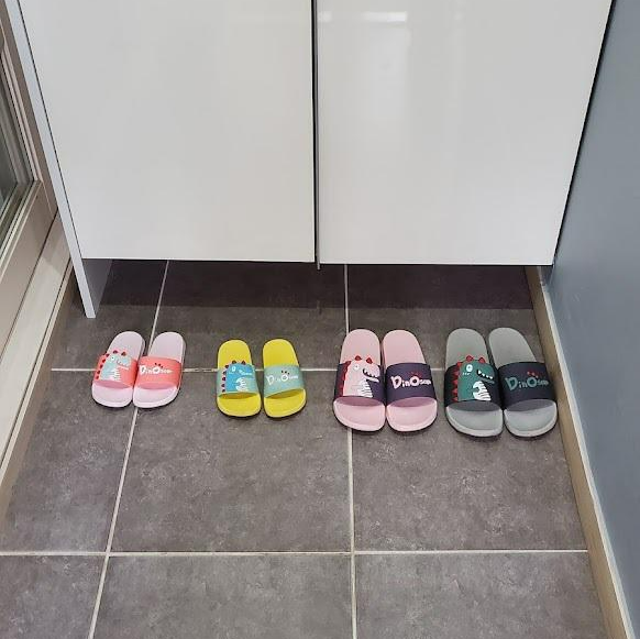 현관문을 열고 들어가는데, 귀여운 슬리퍼들이 보이네요 ㅎ