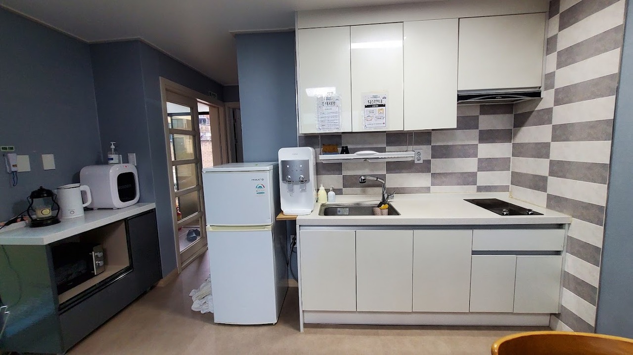 다시 방에서 나와 화장실 앞을 지나면 전자레인지와 젖병소독기, 전기포트가 보이네요