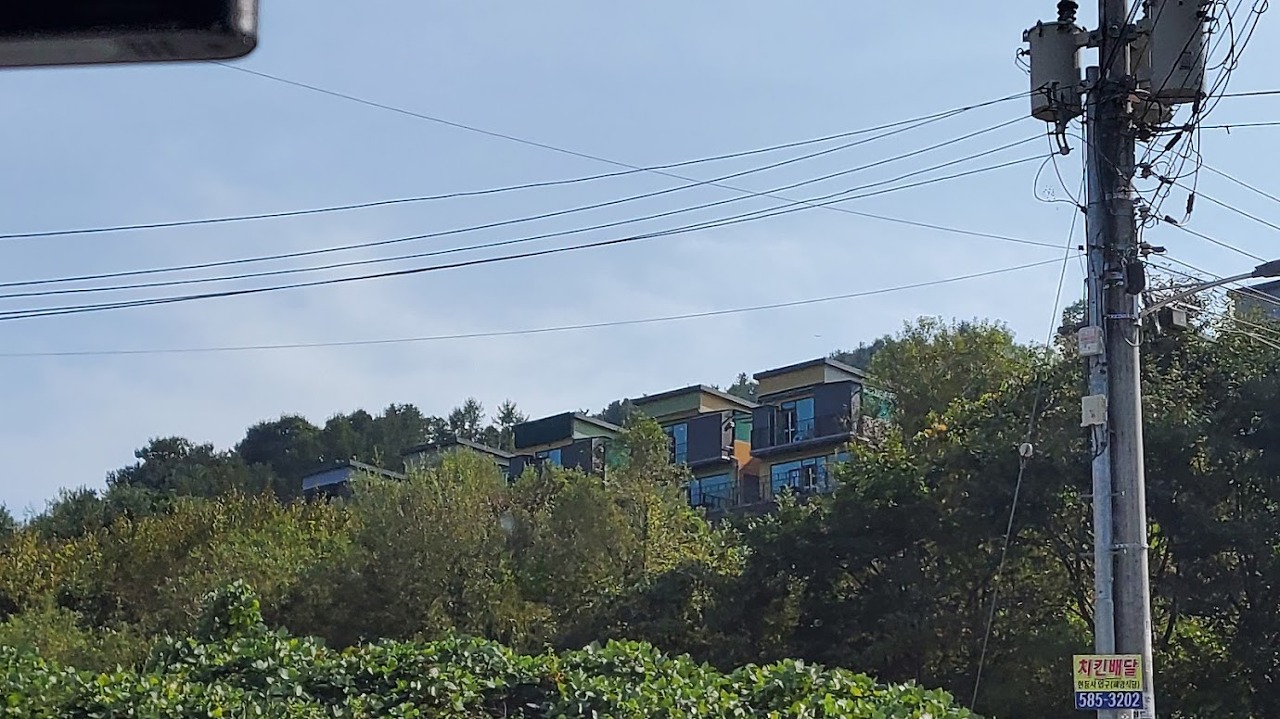 차를 타고 가는데 유명한 등산로에서 볼 수 있는 식당들 모습이 보이는데 조금 더 올라가니 옹벽 위에 숙소가 보였어요