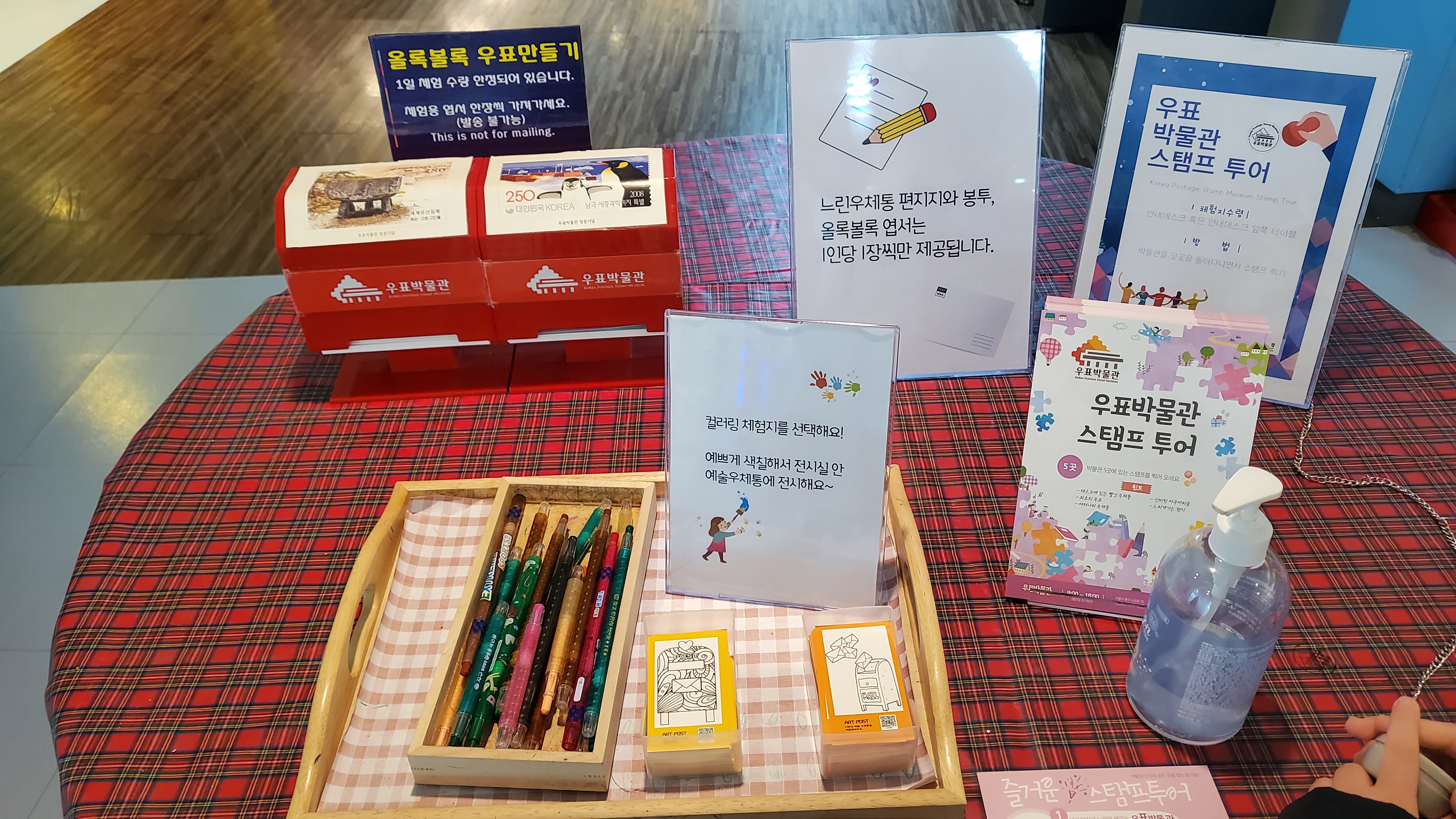 입구로 들어가서 제일 먼저 눈에 들어오는 테이블에 스탬프 투어 올록볼록 우표 만들기가 보이네요.