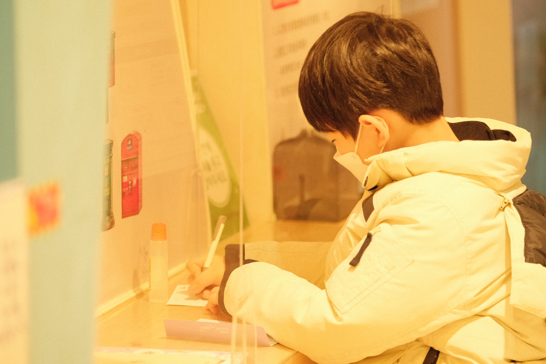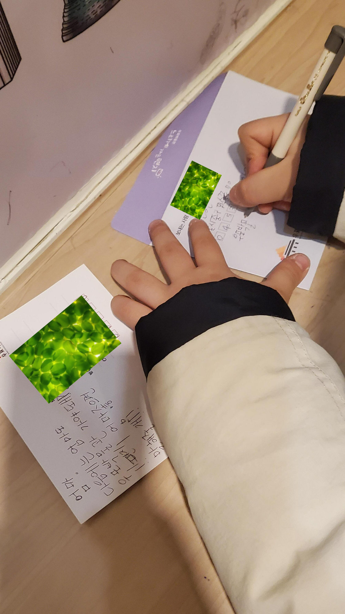 고민은 없는 걸로 하고 엄마한테 편지 쓴다고 해서 입구에 가서 우표를 사니 봉투를 주셨서 열심히 써서 6개월 뒤에 가는 우체통에 넣었어요.(우체통은 1년 뒤 6개월 뒤 두 개가 있었습니다.)