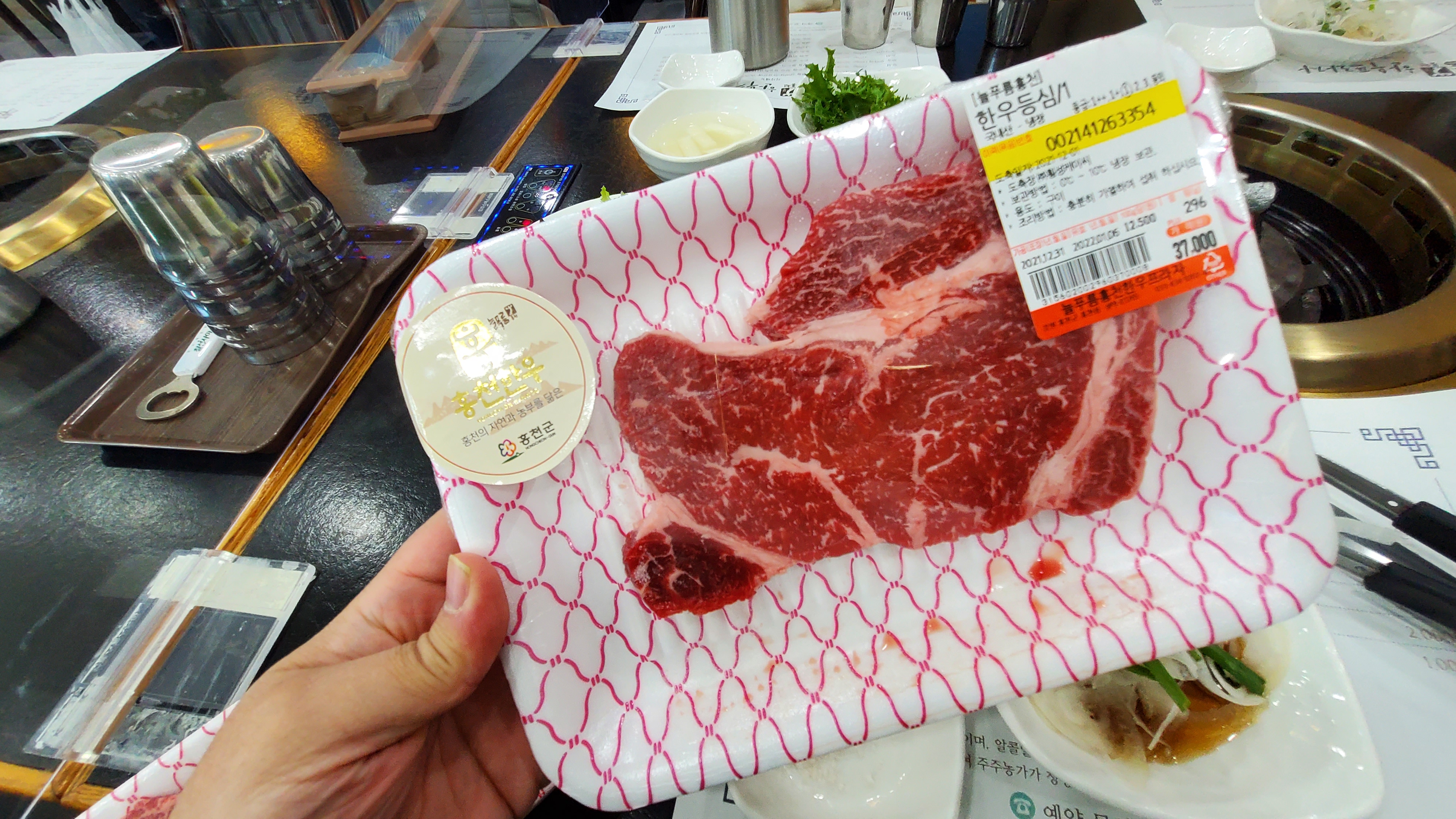 고기는 종류별로 잘라져서 패킹되어 있었고 거기서 고기값만 계산하고 식당으로 들어갔어요