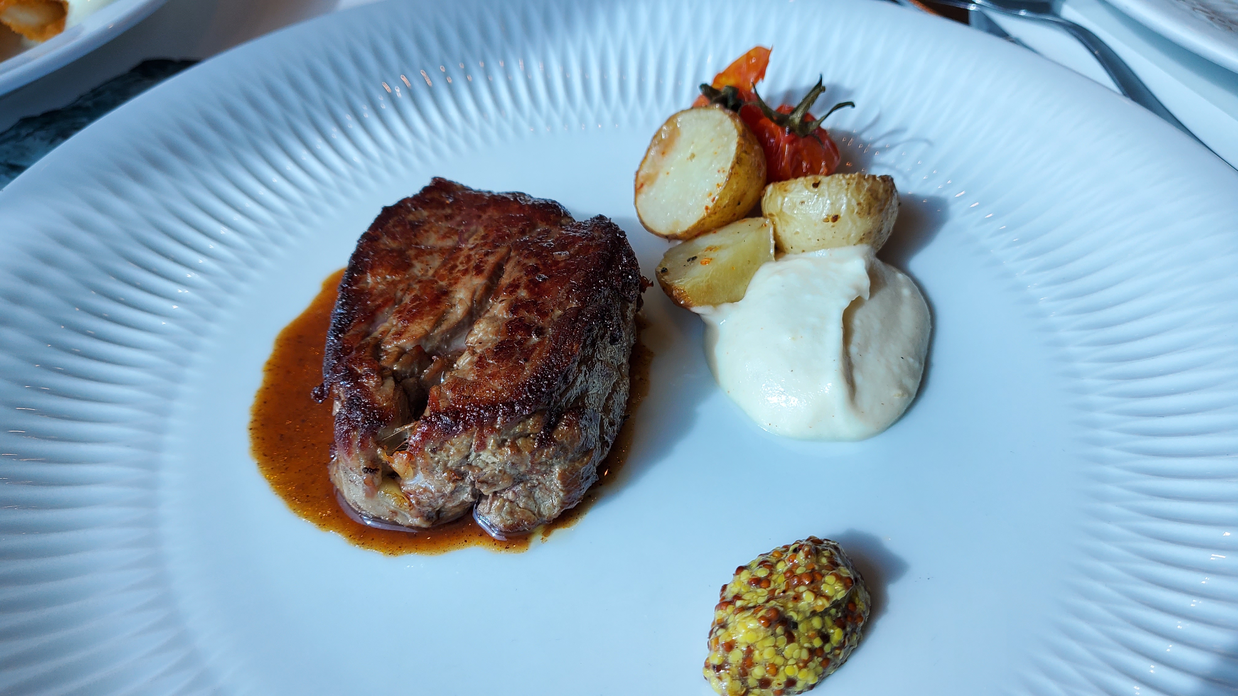 스테이크는 일반적인 스테이크의 반 정도? 코스에 나오는 스테이크 사이즈라고 생각하시면 될 것 같아요.