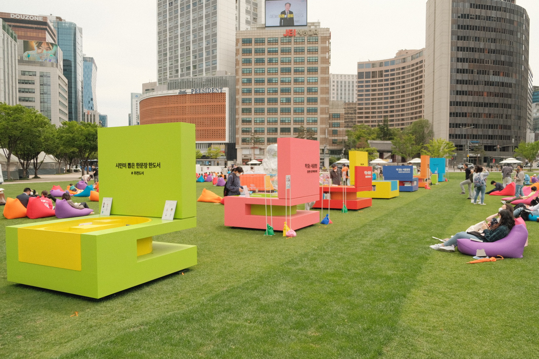 1층 시청광장엔 이쁜 빈백들로 가득했어요 :)