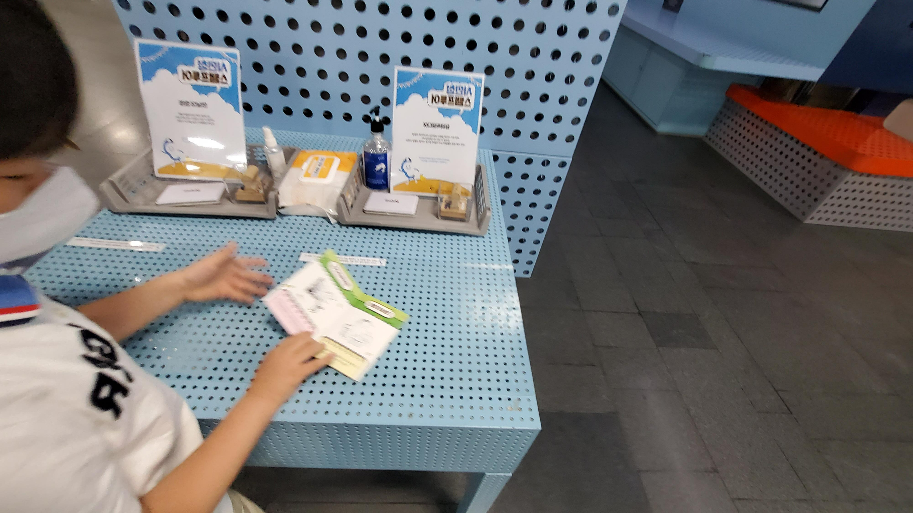 행사하는 곳으로 들어가니 테이블이 있고 그위에 문구류들이 있었어요