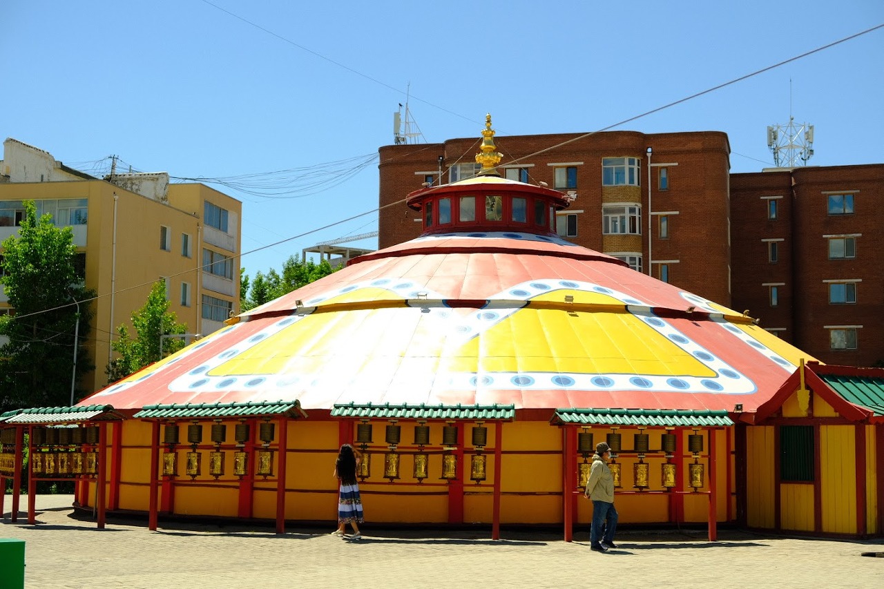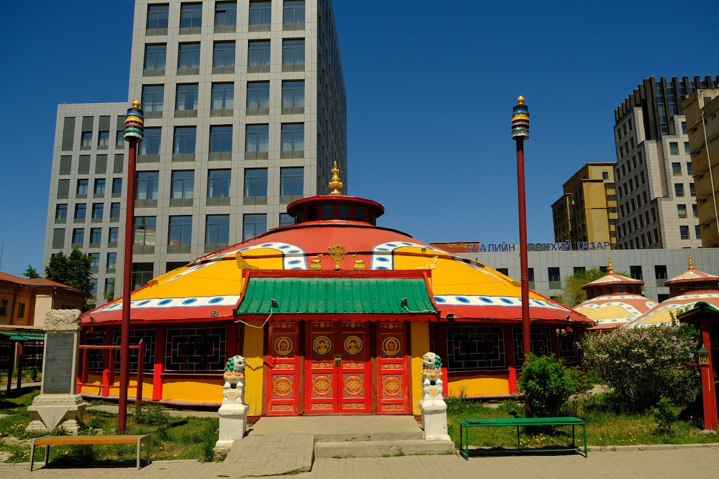 교회를 나와서 거리로 나와서 걷기 시작했습니다. 혼자다 보니 어디로 가든 제 마음대로 하면 되니 그건 참 편하고 좋았어요. 사실 그래서 늘 혼자 여행을 많이 다녔는데, 몽골에서 투어 여행은 일행들이 너무 좋아서 다음에도 단체 투어도 찾아볼 것 같아요. 길거리 사진을 찍으며 걷는데 특이한 건물이 보였어요. 왠지 느낌이 절인 것 같았어요. 오늘은 교회도 갔다가 절도 갔다가 다 했네요 ㅋ