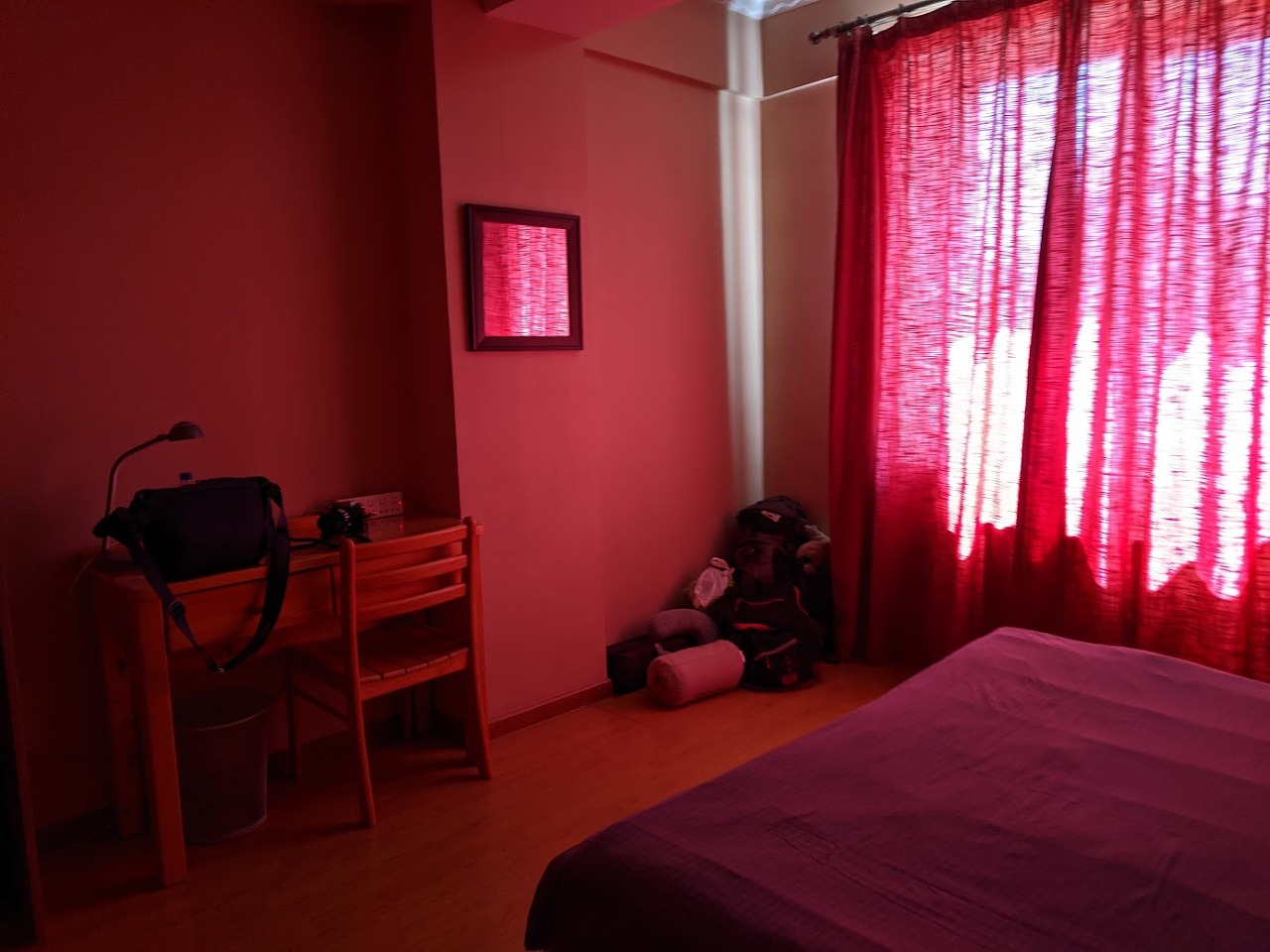 방은 마지막이니 호사를 부려보겠다고, 혼자 화장실 딸린 방을 예약했어요. 물도 콸콸 잘 나오고 너무 좋았어요. 일단 청소하시는 분이 9시 넘어서 오신다고 그때까지 계속 앉아서 기다리는 시간도 아까워서 밖으로 나왔습니다.