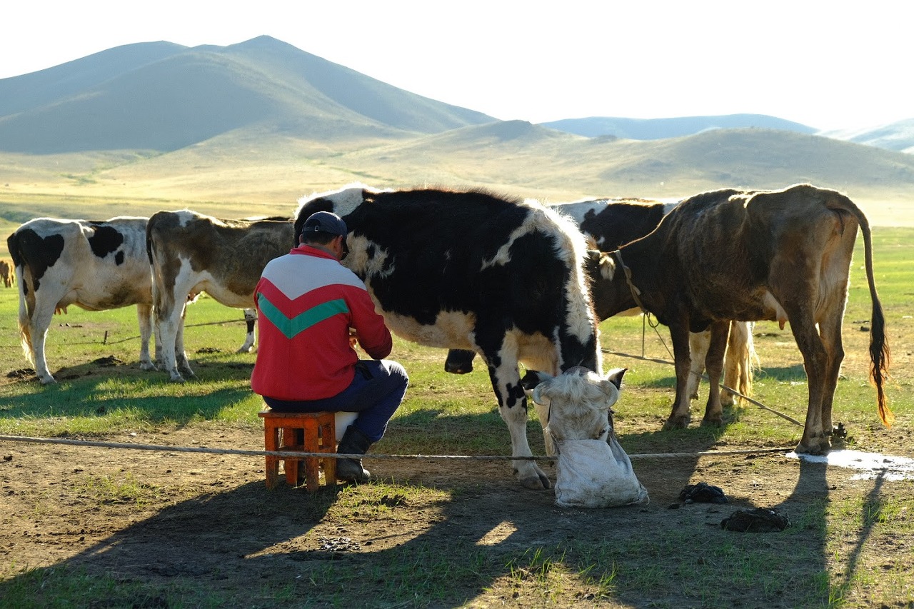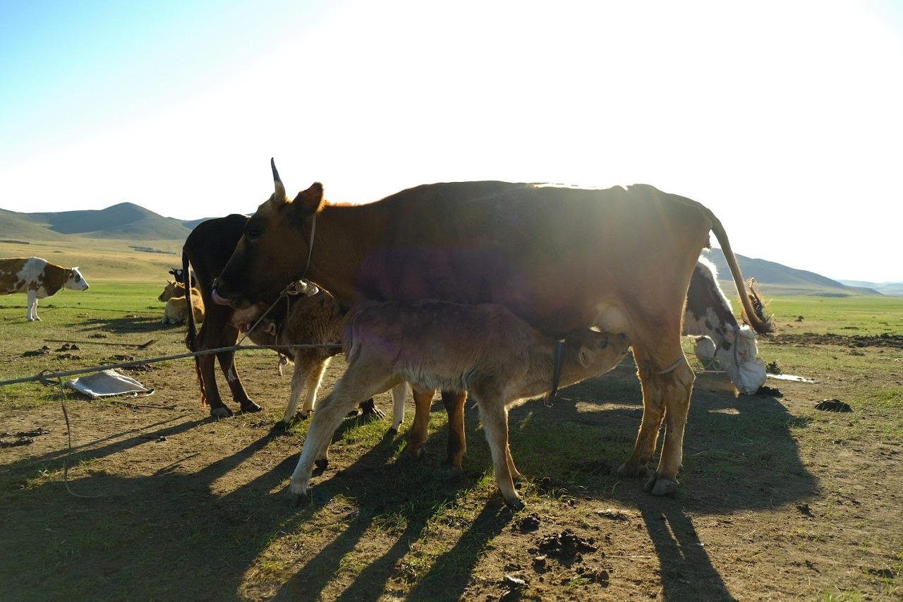 소에게 먹이를 먹이는 동안 젖을 짜는 것 같았어요. 새끼들이 오면 젖을 못 짜니깐 새끼들은 작은 우리 같은데 넣어두고 젖을 짜고 나중에 새끼를 데리고 오는 것 같았어요. 그렇게 아침에 유목민 게르에서 젖을 짜는 모습을 보았습니다. 완전 감동!!! 진짜 마두금 연주 듣는 것만 빼면 몽골에서 해보고 싶은 거 다 해봤네요 :)