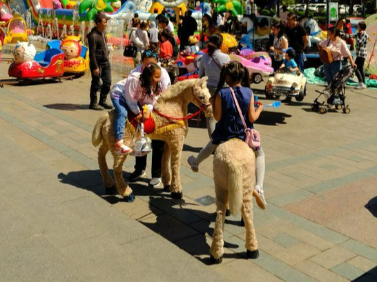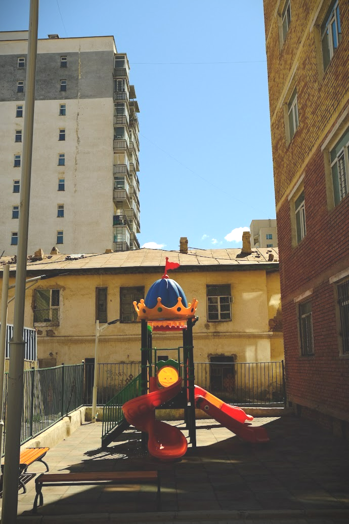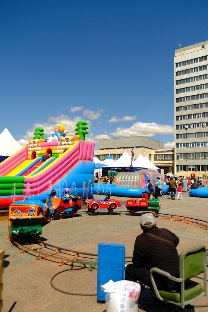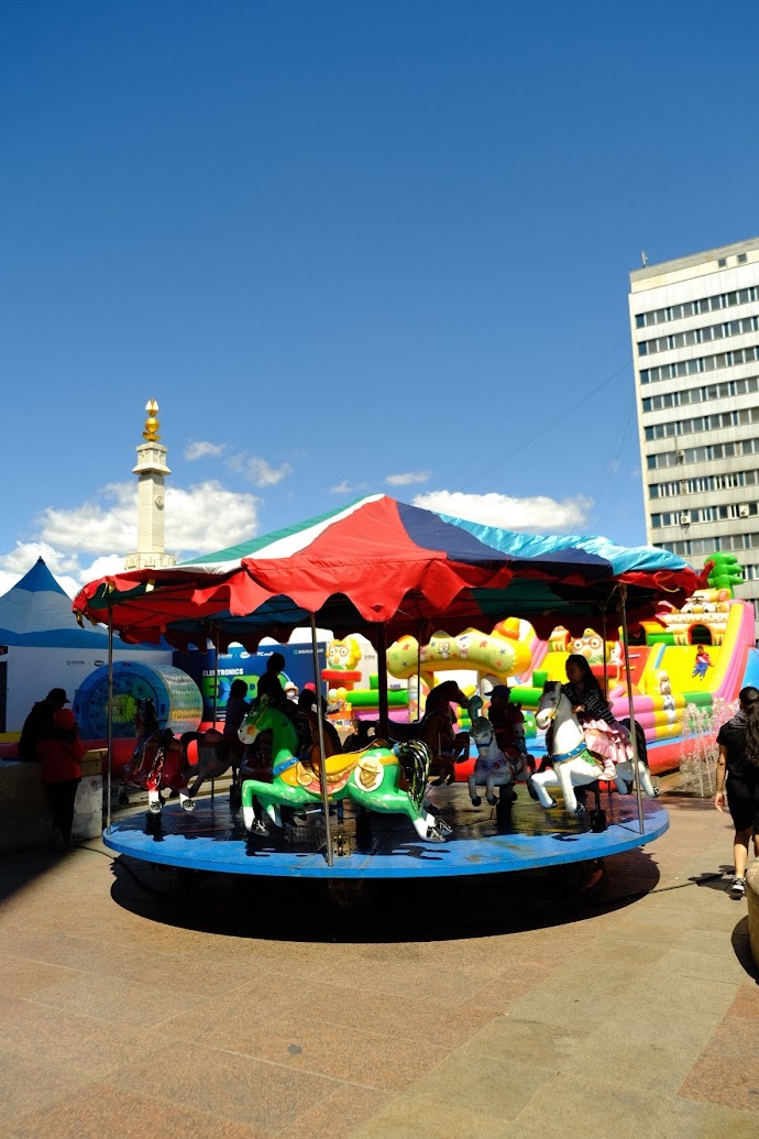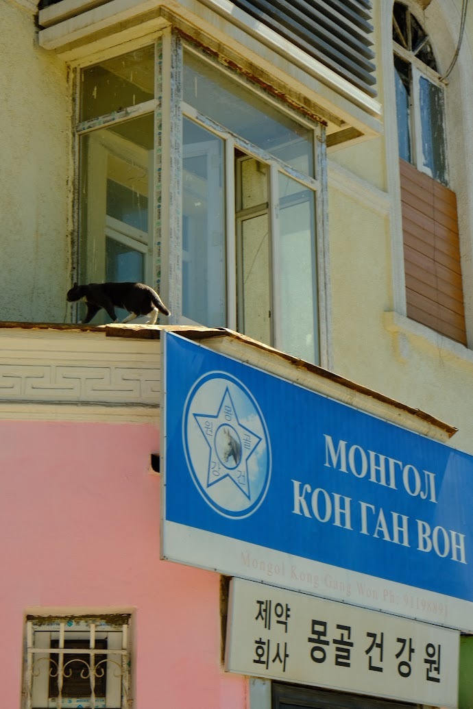 식당에서 나와서 다시 한참 걸어 다니면 사진을 찍었어요. 중간중간 대학교들도 좀 보이더라고요. 몽골도 대학교들 대부분이 울란바토르에 있다 보니 학기 중엔 사람이 많고, 방학이 되면 고향으로 내려가거나 아르바이트를 한다고 들었어요. (몽골 목사님 말 인용) 국립예술대 앞으로 계서 계속 걸어가는데, 한국 식당들도 은근히 많고, 건강원도 하나 보이더라고요 ㅋ 고양이 한 마리가 겁도 없이 그 위를 나돌길래 거긴 위험하니 내려오라고 불렀지만 꿈쩍 않네요. 계속 걸어가자 박물관(Central Museum of Mongolia)이 나왔는데, 6/1이 몽골 어린이날이어서 그런지 아이들이 좋아할 만한 회전목마, 꼬마 기차 등이 있었어요. 조금 재미난 건 사람이 탈 수 있는 큰 말 인형이 있었는데 거기에 애들을 태우고 사진을 찍으시더라고요. 역시 몽골이라 그런지 틀리군요 ㅋ