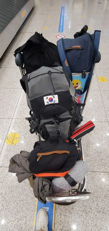 수화물을 찾고 나오니 벌써 1시가 넘었네요. 저와 수많은 여행을 함께한 백팩이에요. 제가 맥시멈 라이프를 추구하다 보니 짐이 좀 많았어요. 앞뒤로 메고 열심히 다녔는데, 가방이 이젠 너무 낡아서 안에 방수 코팅이 다 벗겨져서 이젠 보내줘야 했어요 ㅠㅠ 곧장 보건소로 향했는데, 공휴일이다 보니 1시에 마감을 했었네요 ㅠ 다음날 보건소 가서 검사를 했어요