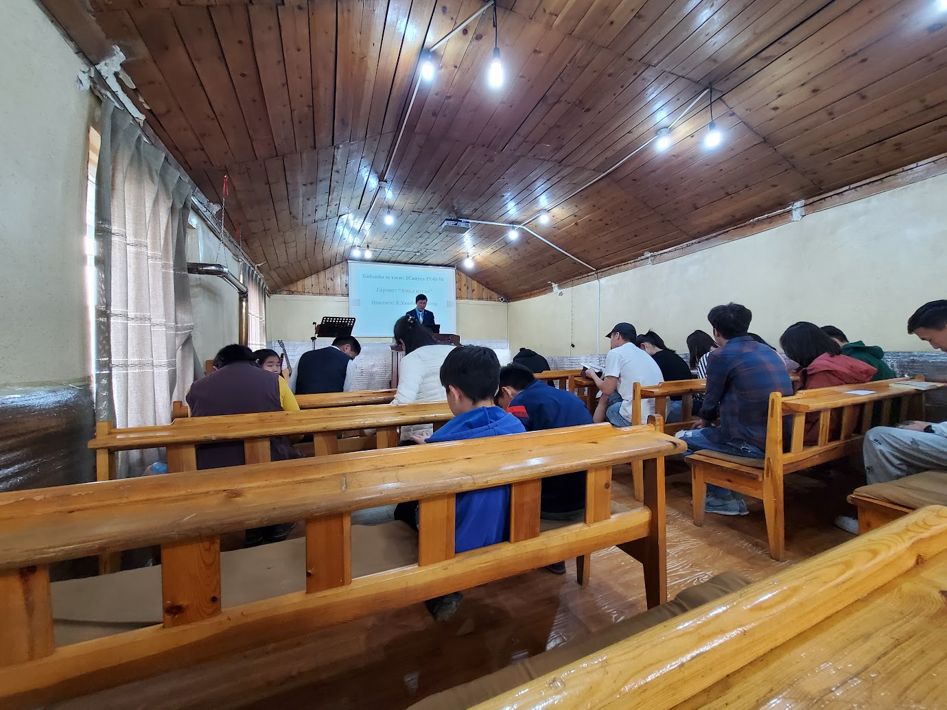 아는 목사님께 몽골에 가는데 갈만한 교회가 없겠냐고 여쭤봤더니 여기 목사님 카톡을 직접 연결해 주시더라고요. (한국어 탑재 완료) 몽골인 목사님이 구글 지도로 위치 알려주셔서 어렵지 않게 찾아갔습니다. 보통 교회 건물이라면 쉽게 볼 수 있는 십자가는 안 보이는 오래되고 낡은 건물이었어요. 사실 입구까지 와서 여기가 맞는지 아닌지 몰라서 문을 열어볼까 말까 고민하고 있는데, 어떤 말끔하게 입으신 분이 한국어로 "교회?" 하시길래 따라 들어갔어요.(여기 몽골 맞음?ㅋㅋㅋ) 교회는 오래되기도 하고 난방이 잘 안 되는지 곳곳에 단열 내장재인 은박지가 벽에 붙어 있었어요. 그리고 전정에 달려있는 프로젝트는 수평 수직도 안 맞아서 목사님이 직접 의자에 올라가서 맞추시더라고요 매번 그렇게 하시는지 ㅠㅠ