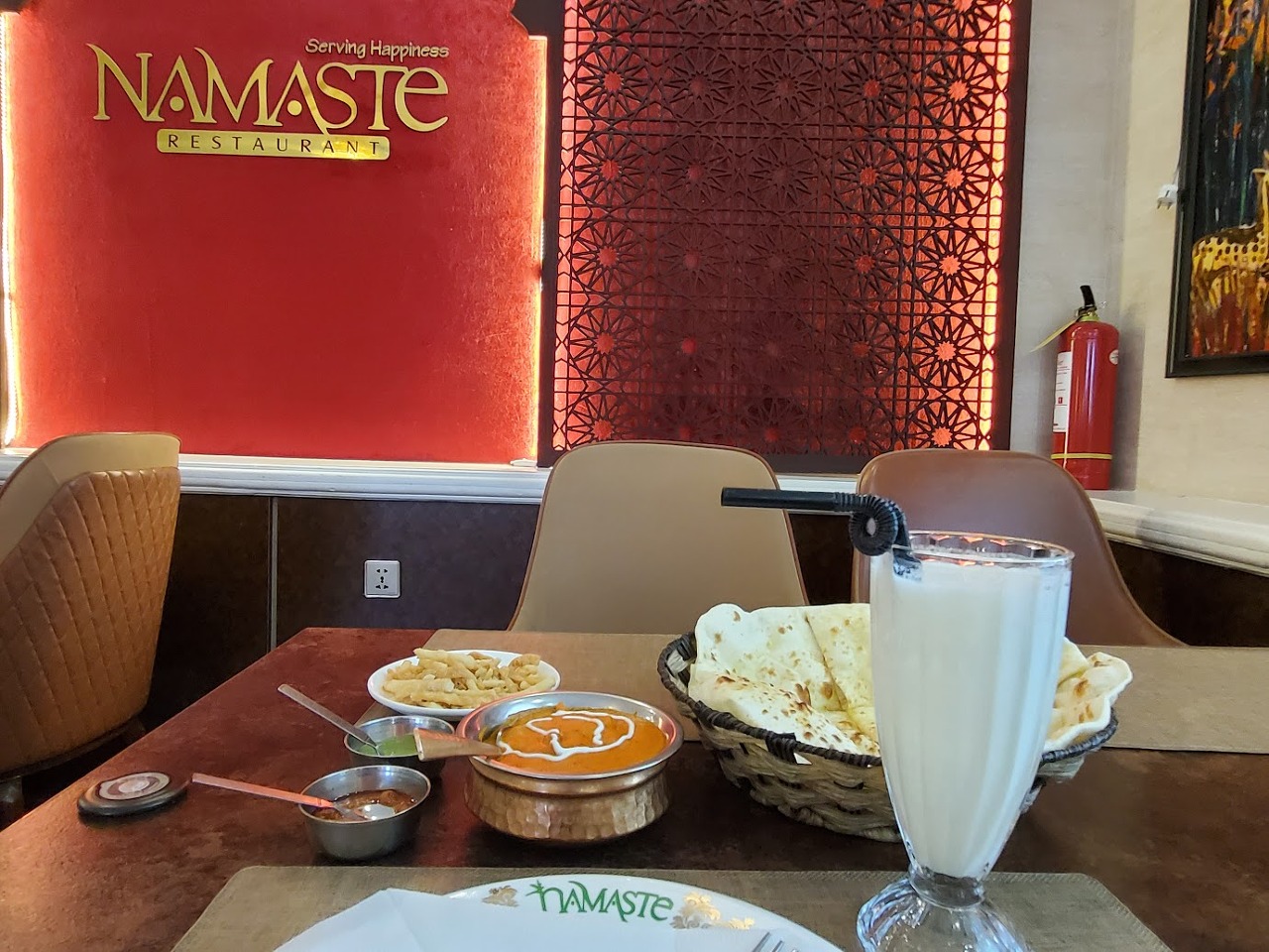 원래 한국에서도 아침을 간단하게라도 꼭 챙겨 먹는 데다가 투어 기간 동안 계속 아침을 먹어서 그런지 엄청 배가 고팠어요. 그래서 점심은 뭘 먹을까 하고 보는데, 마침 나마스떼라는 식당이 보였어요. 론니플래닛에 괜찮은 곳이라고 쓰여있던 게 기억나서 방문했어요. 나중에 안 사실이지만 나마스뗴라는 식당이 여러 군데 있고, 식당마다 약간씩 차이가 있는 것 같아요. 우리 팀 막내 TH는 다른 나마스떼 식당에 갔는데, 거기 라씨는 진짜 별로였다고 하더라고요. 저는 스위트 라씨라 그런데 먹을만했어요