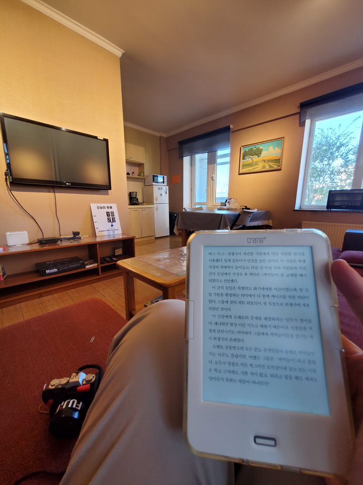 음식이 나올 동안 책을 읽었어요. 사람들이 몽골 여행 와서 할 게 없어서 술만 마시고 놀았다고 하길래 나는 책이나 좀 읽어야겠다고 욕심내서 ebook을 잔뜩 담아왔었거든요. 그런데 웬걸 사람들이랑 이야기하고 노느라 책 볼 시간이 많진 않았어요. 사람들이 다 잠들었을 때, 푸르 공에서 읽을 때 말곤 그럴 튼이 없었어요. 책은 100권가져갔는데, 2권 읽고 이게 3권째였어요. ebook이니 가능한 거였겠죠?