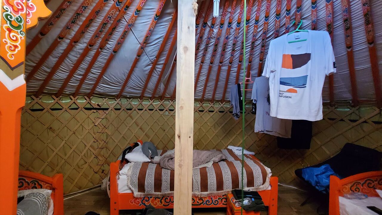 차강소브라에서 숙소로 돌아왔다. 오늘 숙소는 가이드님이 이번 투어 중에서 제일 좋은 숙소(쌍따봉해주셨다) 중에 하나라고 해서 많이 기대를 했다. 기존에 게르가 아니라 디자인 모텔(호텔은 아니고...) 같은 느낌이다. 전기가 저녁에는 안 들어온다고 해서 열심히 충전하려고 했는데, 전기가 안 들어왔다. 리셉션에 가서 이야기하는데 영어는 나이 지긋하신 할머님만 하실 수 있었는데, 5시부터 전기가 들어온다고 했는데, 6시는 다 돼서 들어오기 시작했다. 그리고 우리가 외부에서 사온 술을 마시려면 숙소에서 멀리 나가서 마셔야 한다고 한다.(아니 이게 무슨 ㄱ 소린지) 아니면 여기 바가 있어서 거기서 사먹어야한다고 한다. 여기는 느낌이 비싼데 뭔가 불편한 곳이었다. 쓰레기도 나중에 가지고 가야 했고, 샤워실도 정해진 시간에만 쓸 수 있었고, 그렇다고 뜨거운 물이 나오지도 않았다. (처음 샤워할땐 나왔는데 그냥 햇볕에 데워진 물이었는지 나중엔 나오지 않았다.) 그럼에도 불구하고 숙소는 참 이뻤다. 언뜻 보기에 그냥 다 똑같이 네모나게 생긴 것 같은데, 나름 해의 높이에 따라 베란다 쪽 벽이 그림자 길이가 달라져서 좋았다.