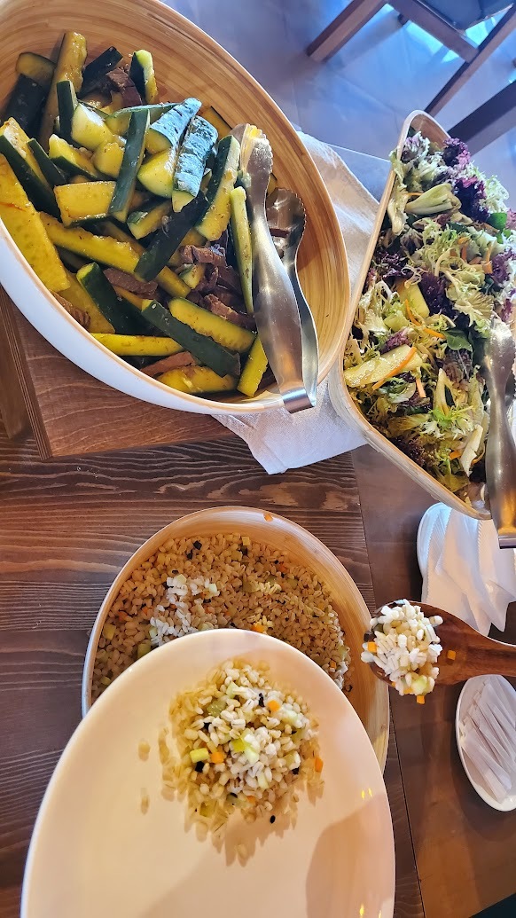 잠시 기다리다가 7시에 음식들이 준비되길래 줄을 서서 재빨리 퍼왔다. 가이드님이 일러 주신대로 빨리 줄을 서지 않으면 원하는 음식들을 다 먹기엔 힘들 것 같았다. 물론 나중에 보충되긴 했는데 그래도 빨리 줄서서 먹는게 나을것 같다. 샐러드 부터 양고기 닭고기 종류가 다양했고 전체적으로 맛이 괜찮았다. 특히 JB과 KH는 양고기가 너무 맛있다고 칭찬을 아끼지 않았다.