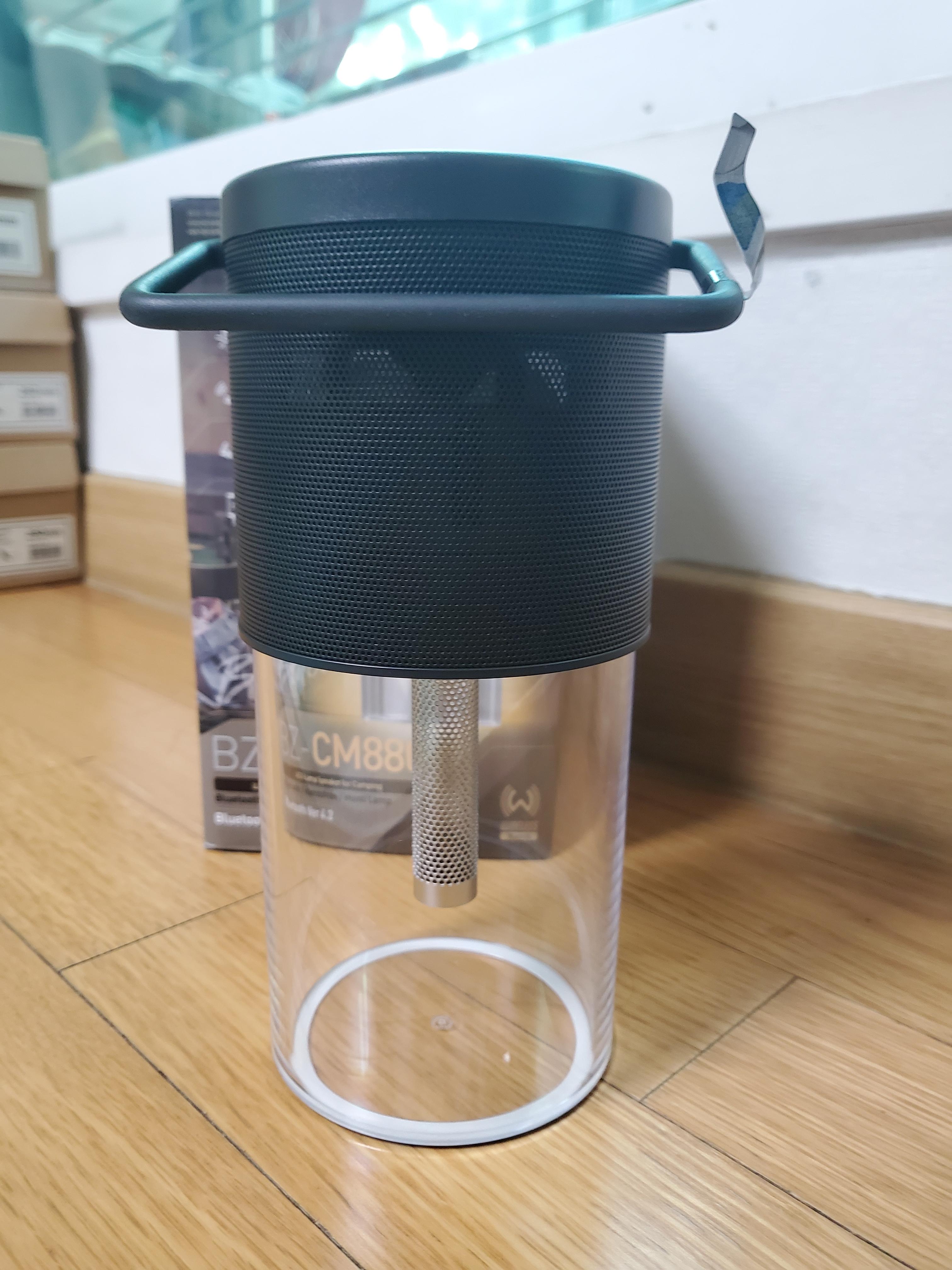가운데 있는 금속이 차잎 걸러주는 망인줄 알았는데 아니 왠 걸 블루투스 스피커인데 불도 나오고 소리 퀄리티도 예술인거예요!!!