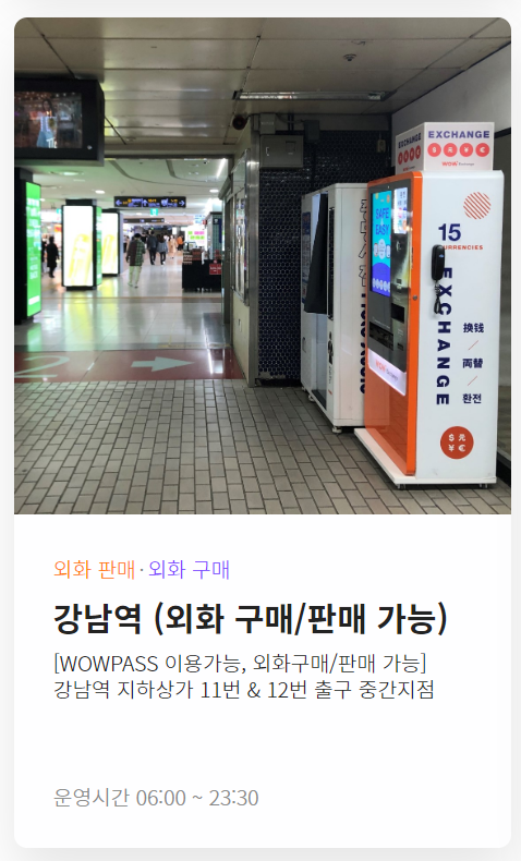원래는 은행앱으로 예약해서 공항에서 찾으려고 했는데, 강남역에 환전 기계가 있다고 하길래 검색해보니 환율도 은행 환율보다 좋아서 호기심반 이용해봤습니다.