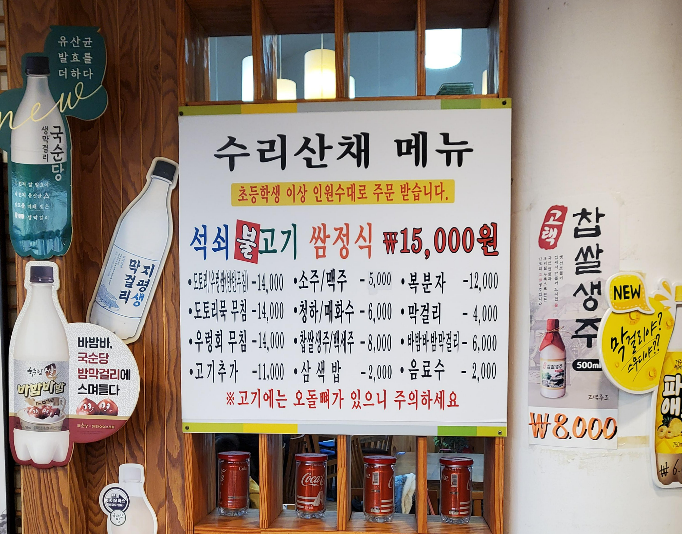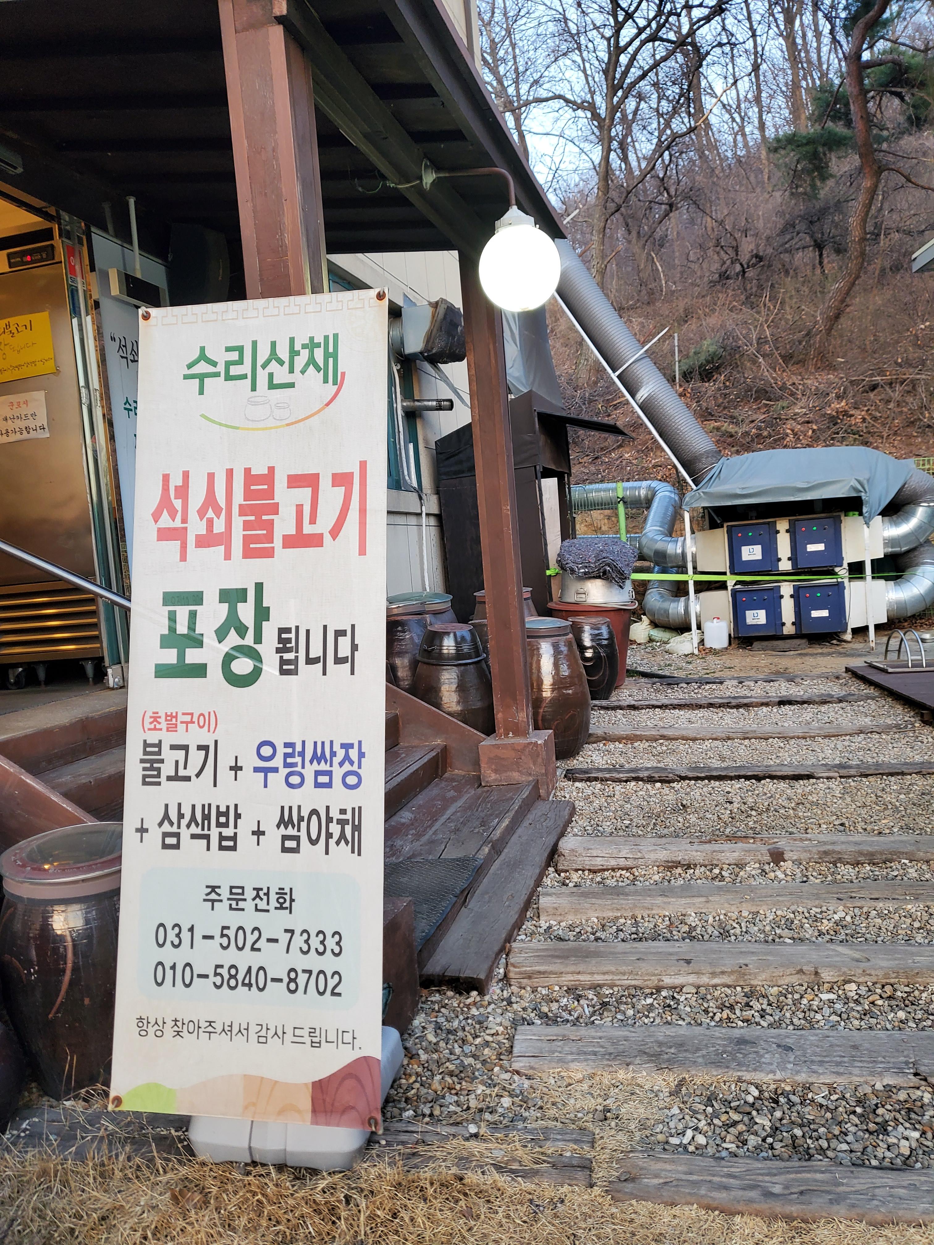 메뉴는 기본으로 석쇠불고기 쌈정식이 있고, 사이드로 도토리 묵이나 우렁회등이 있는 것 같았어요.