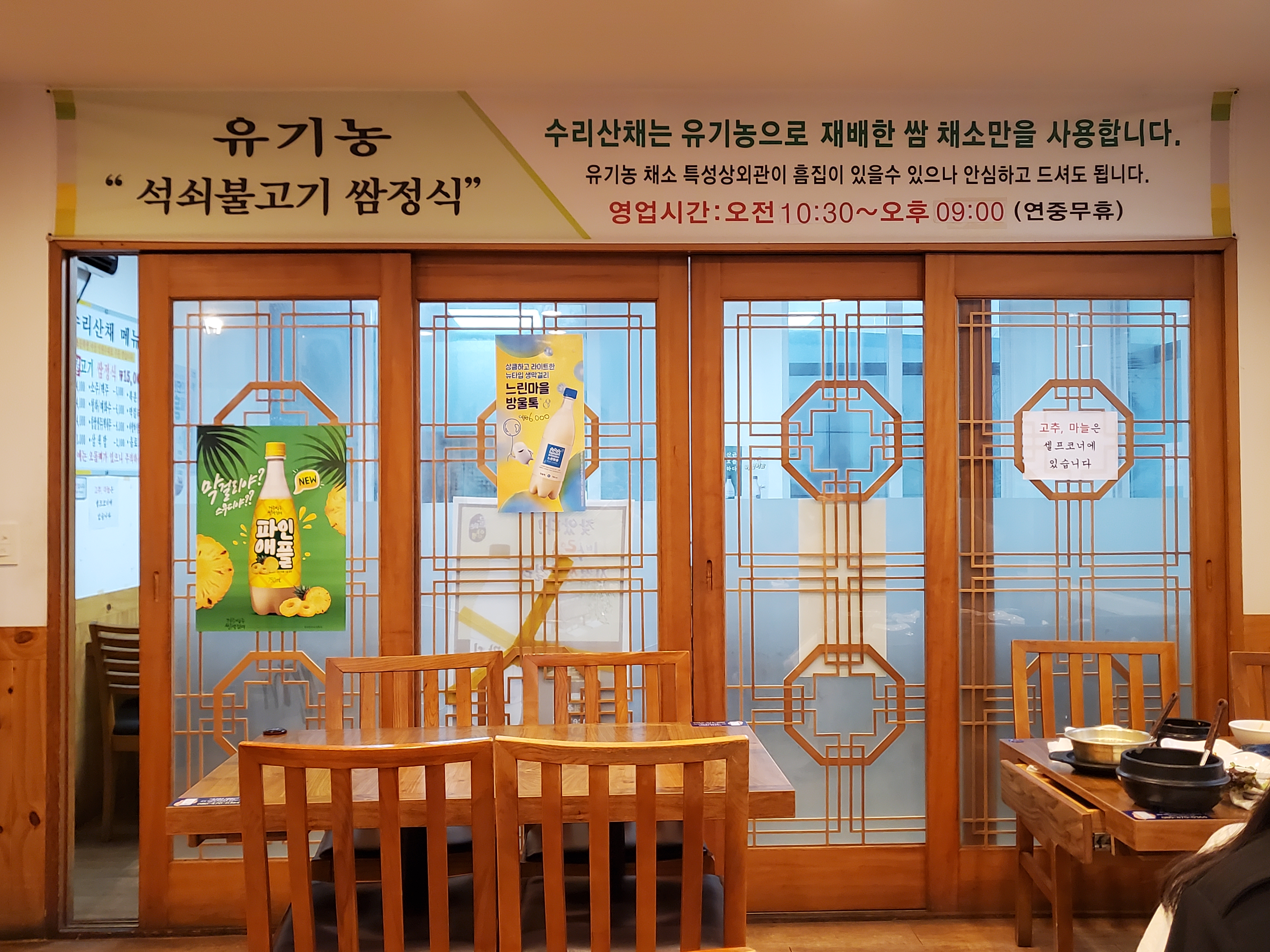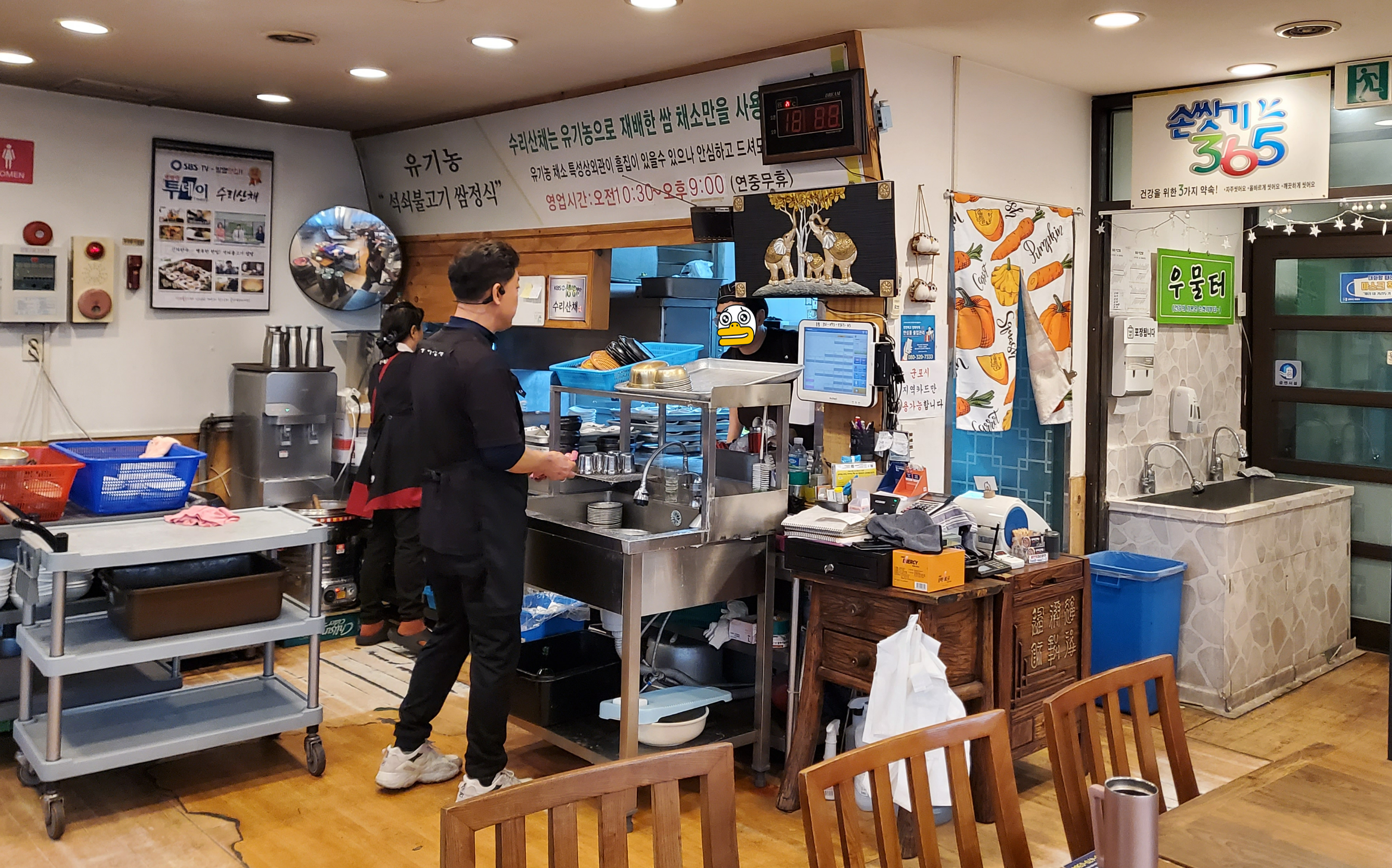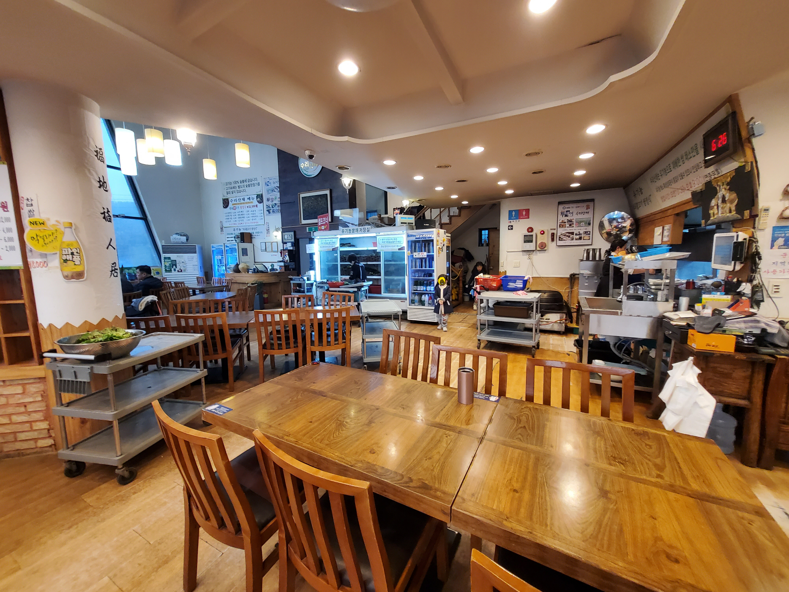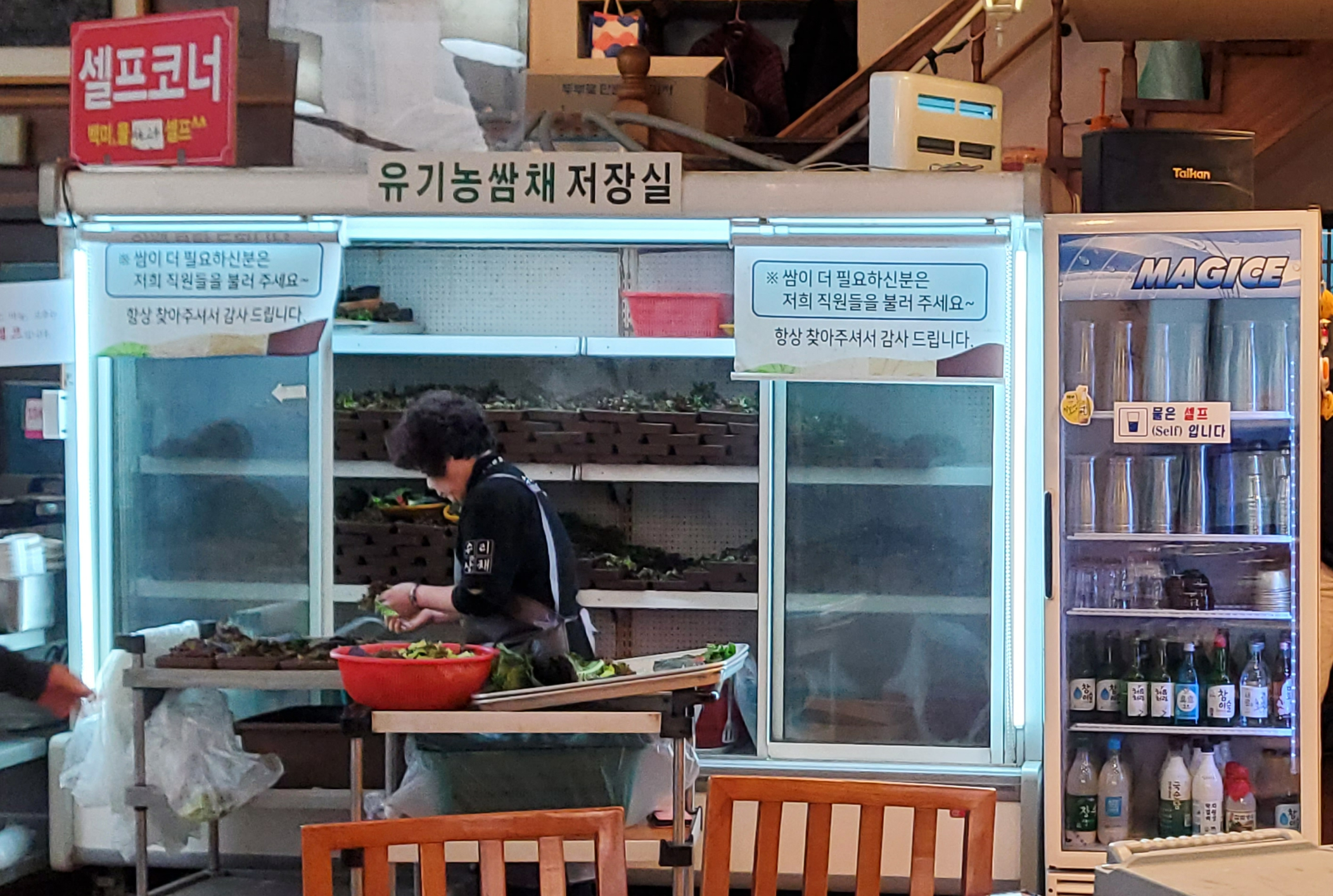 식당 한 가운데(?) 유기농쌈채저장실이 있었어요