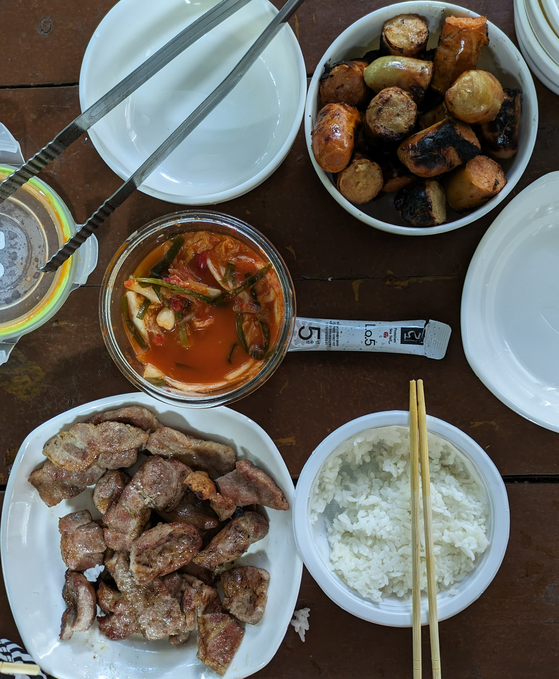 고기 다 굽고 나서 저도 앉아서 먹기 시작했어요 :)