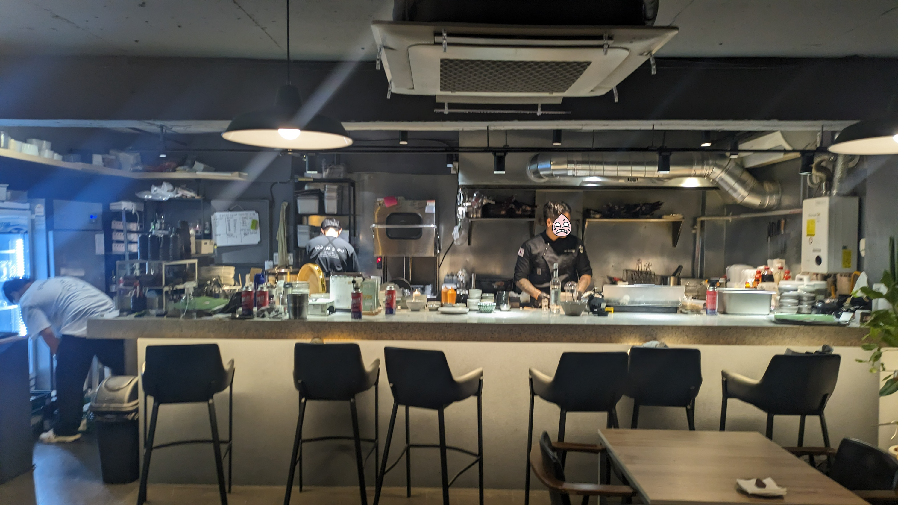 저기 아래 사진에 보이시는 분이 주방장님이신것 같아요. 여기 단골이신일행 분 말로는 여기 남자들 보다는 여자분들이 많이 오는데 가끔 혼자 오는 분들이 저기 바에 앉아서 직원분들이랑 대화를 하면서 드시기도 하신다고 하시더라구요ㅎ 한국에서는 좀처럼 보기 힘든 분위기인데 신기하다 했는데, 저희가 한참 먹고 있는데 진짜 여자분이 혼자 오셔서 직원분들이랑 대화하면서 드시더라구요 ㅎ 참 독특하구나 싶었어요. 그리고 직원분들이 참 친절하구나 생각도 했어요.