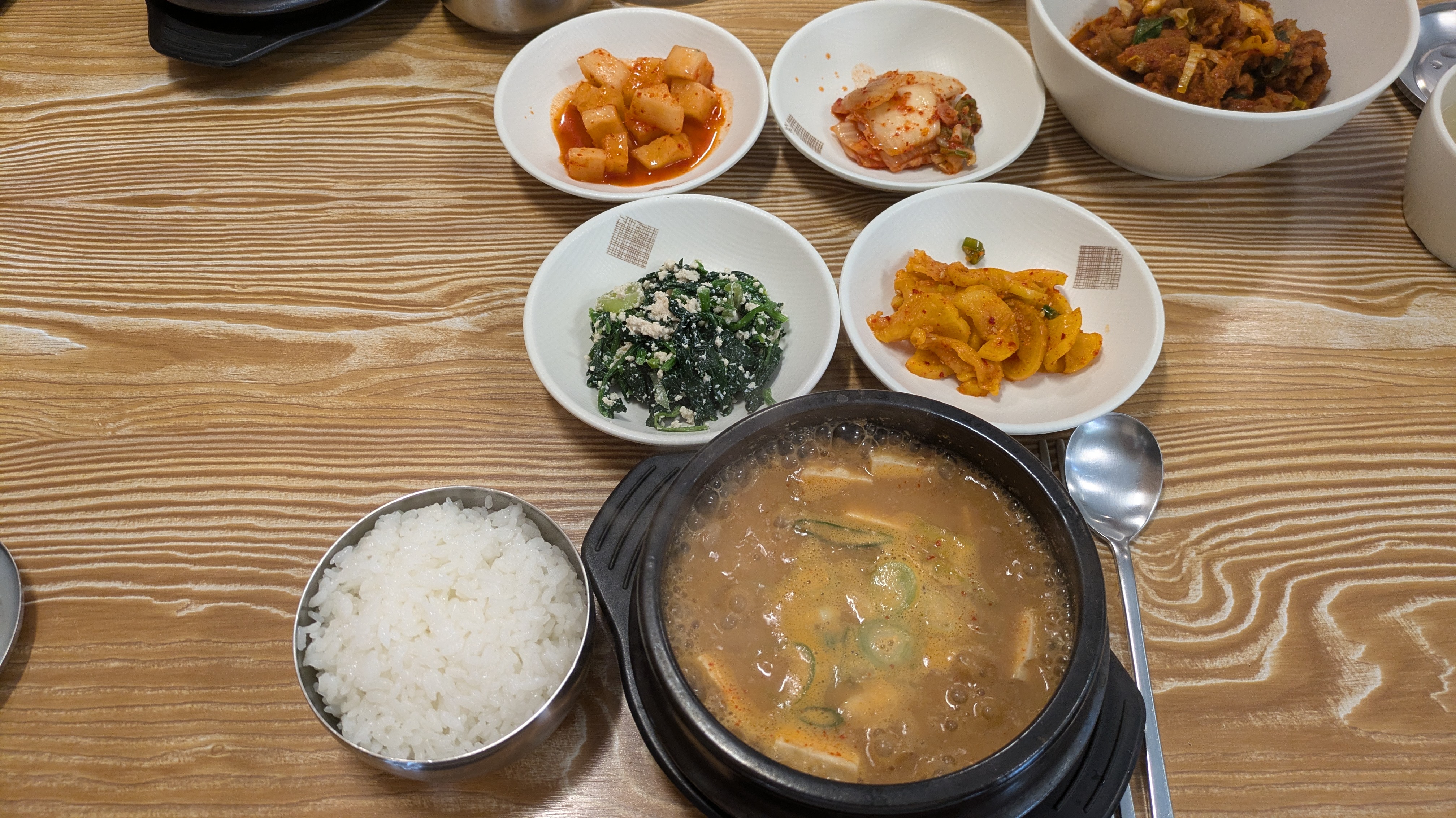 메뉴들이 많지 않아서 그런지 식사도 금방 나왔어요. 저는 청국장 주문했어요. 왠지 대표 메뉴 같았거든요. 사이드반찬들도 나왔는데, 다 괜찮은 편이었어요. 건강한 집밥 느낌?