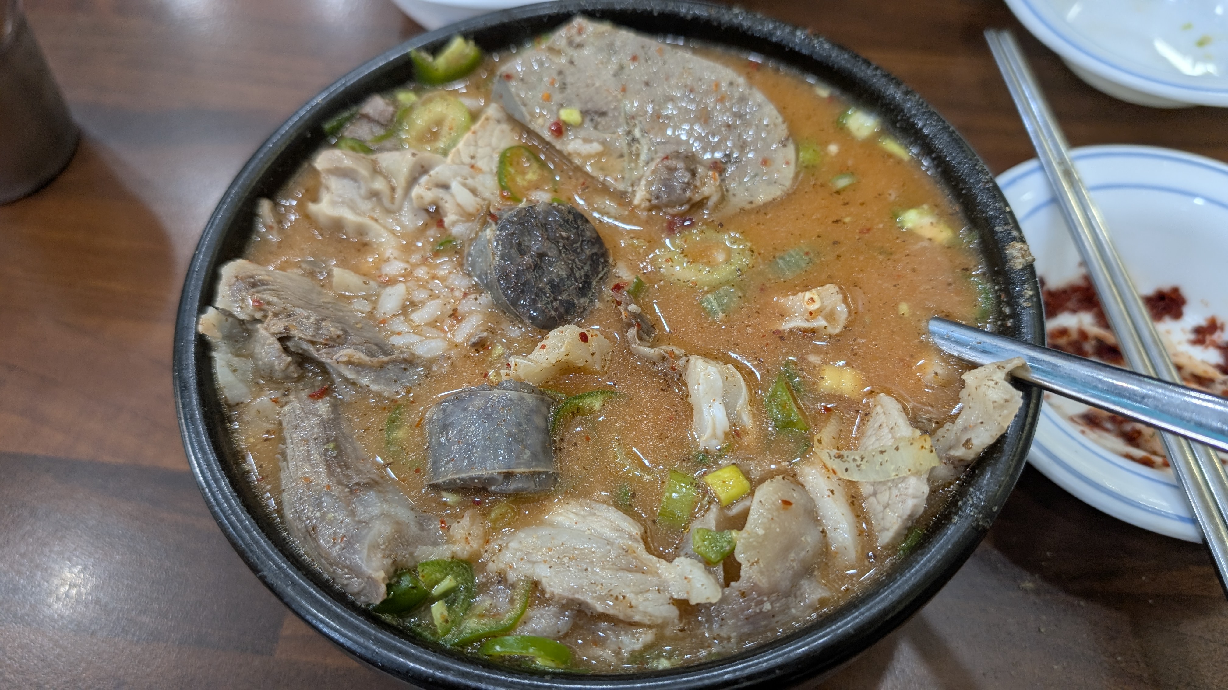 회사 팀원이 여기 한번 가보실래요? 자기 인생 순대국 집이라면서 소개를 해줘서 처음 방문하게 되었습니다. 처음엔 여름에 갔었는데, 점심 피크시간되기 전에 갔는데도 더운데 줄을 벌써 서기 시작했더라구요. 그래도 다행히 줄은 조금 빨리 줄어들었습니다. 테이블이 4인테이블이 쭉 붙어 있는 식으로 되어 있었어요. 그래서 약간은 유동적으로 앉을수 있게 되어 있었어요. 합석 아닌 합석은 당연한 거였어요. 혼자 오신분들은 창가에 앉을 수도 있게 되었어요.
