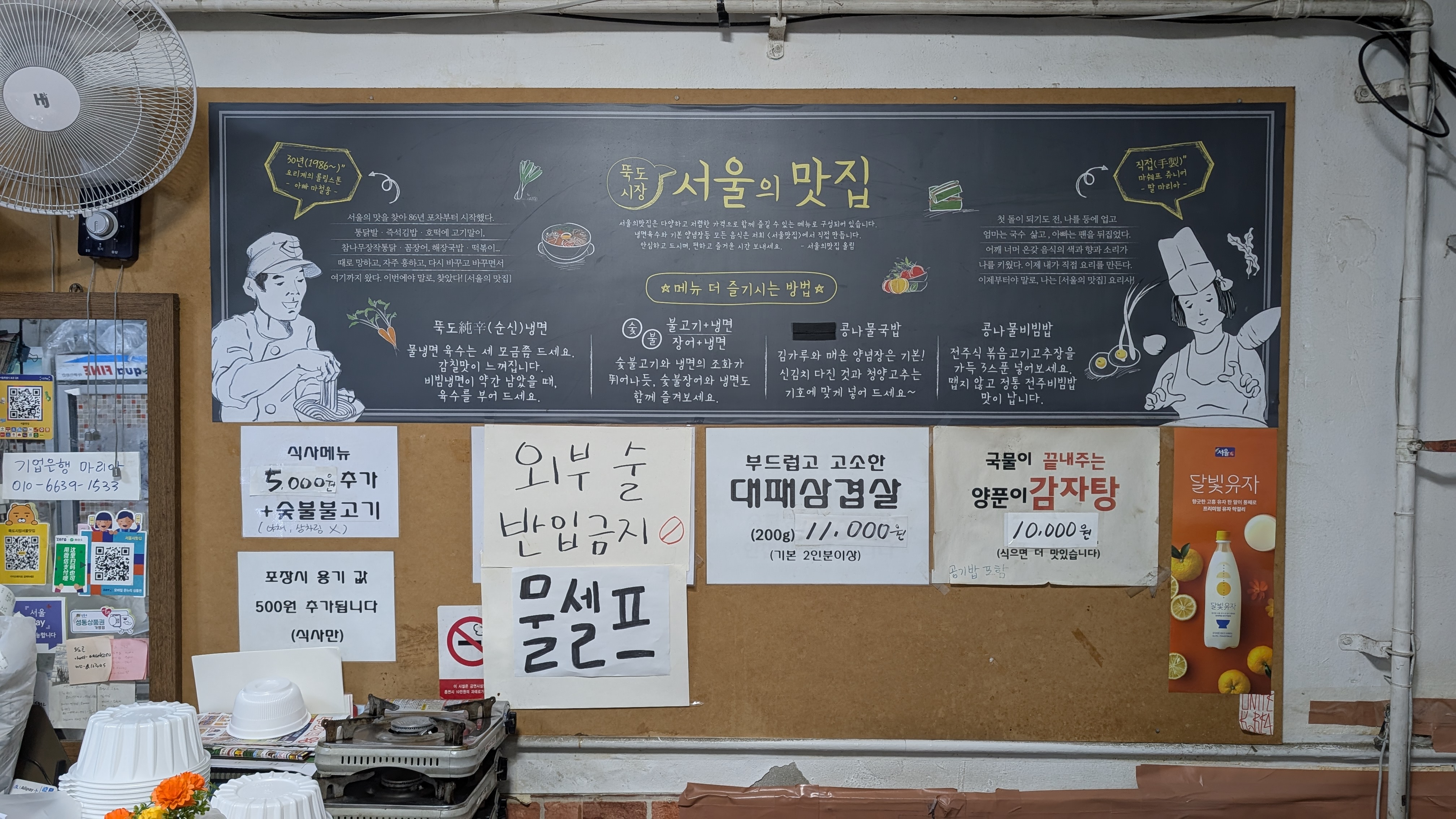 시장 노포 특유의 정겨운 분위기, 세련되진 않은 레트로한 느낌이 있는 공간입니다.