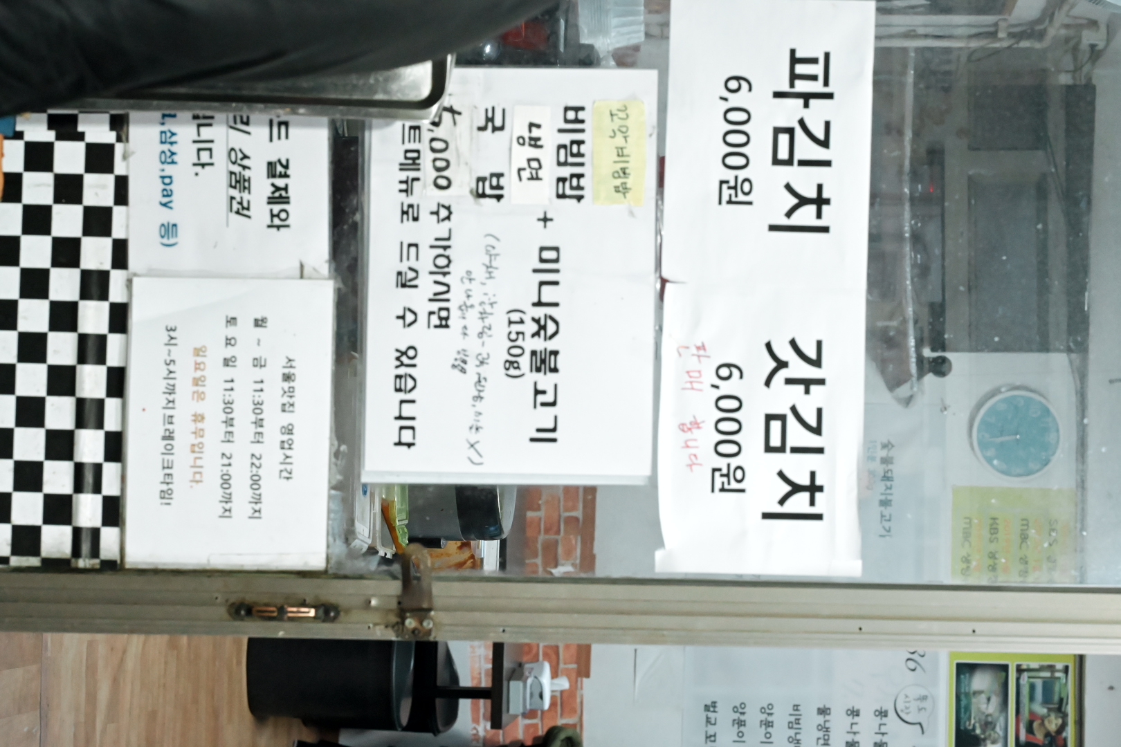 뭐 옆에서 무슨 이야기를 하시는지까지 다 들릴 정도로 좁은 실내에 테이블과 벽지도 얼마나 되었는지 알수도 없이 오래되어 보였습니다. 옆에 메뉴들을 다시 확인하고, 꼬막비빔밥+미니숯불고기를 주문했습니다.